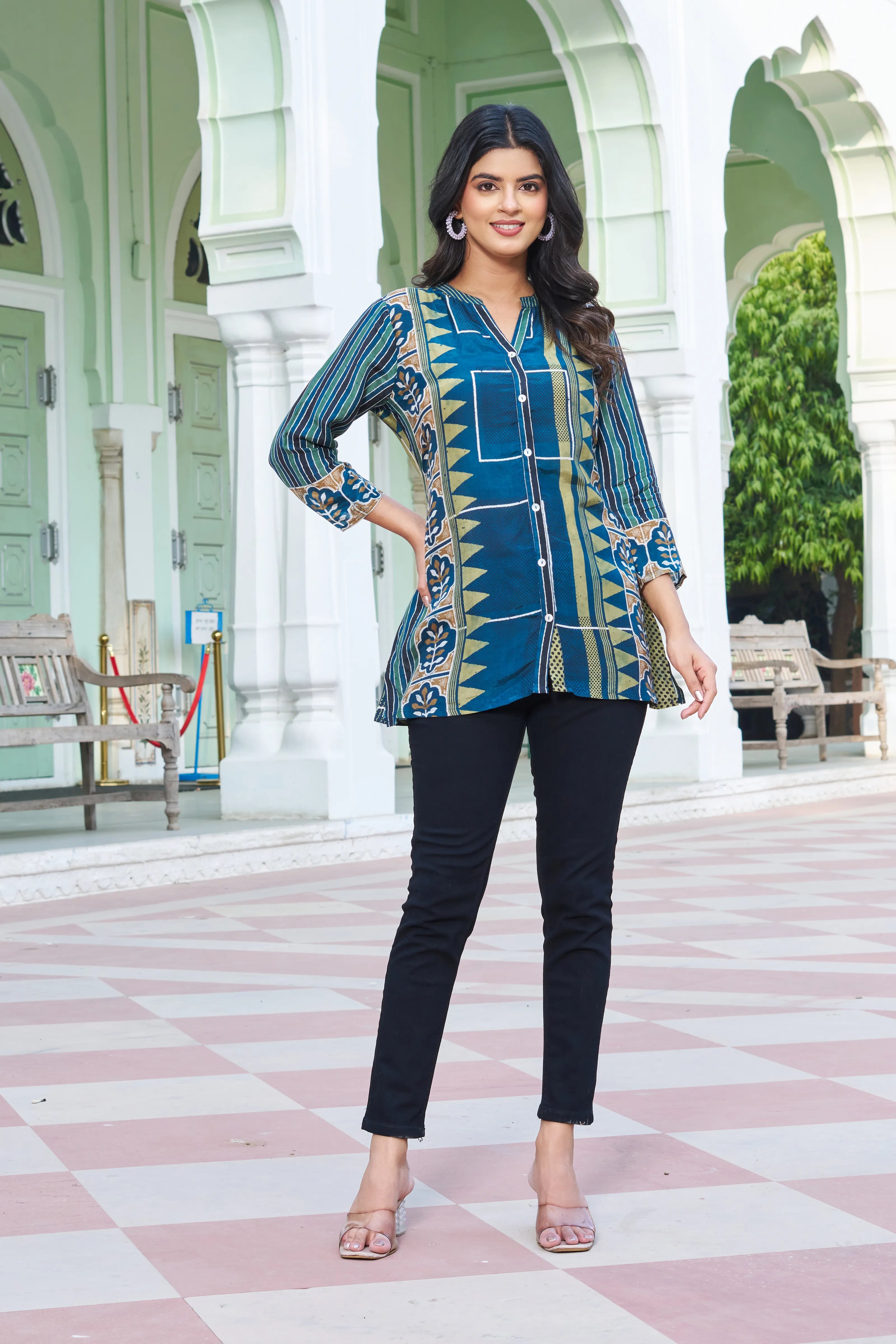 Leaf Peacock Blue Rayon Tunic