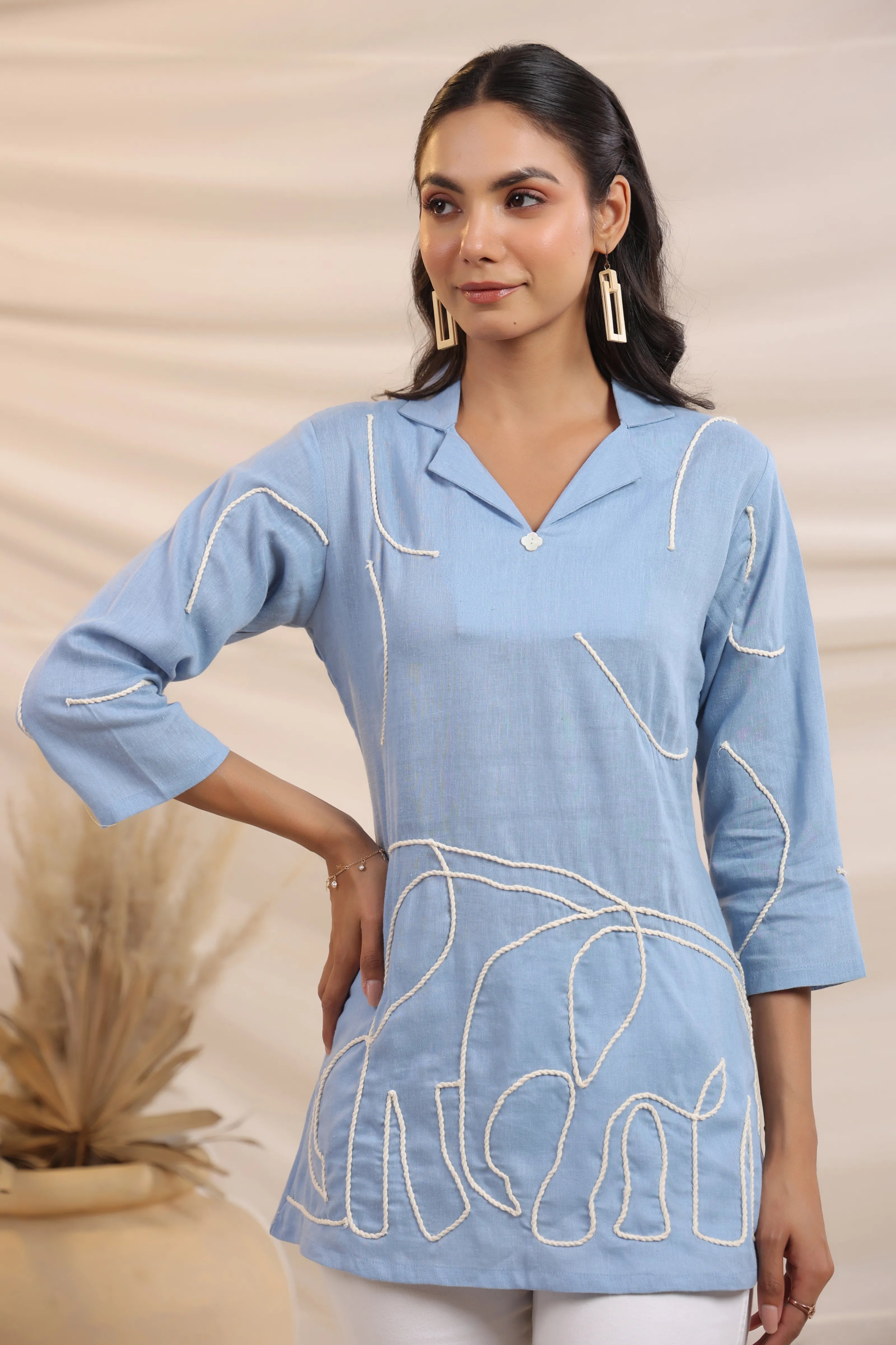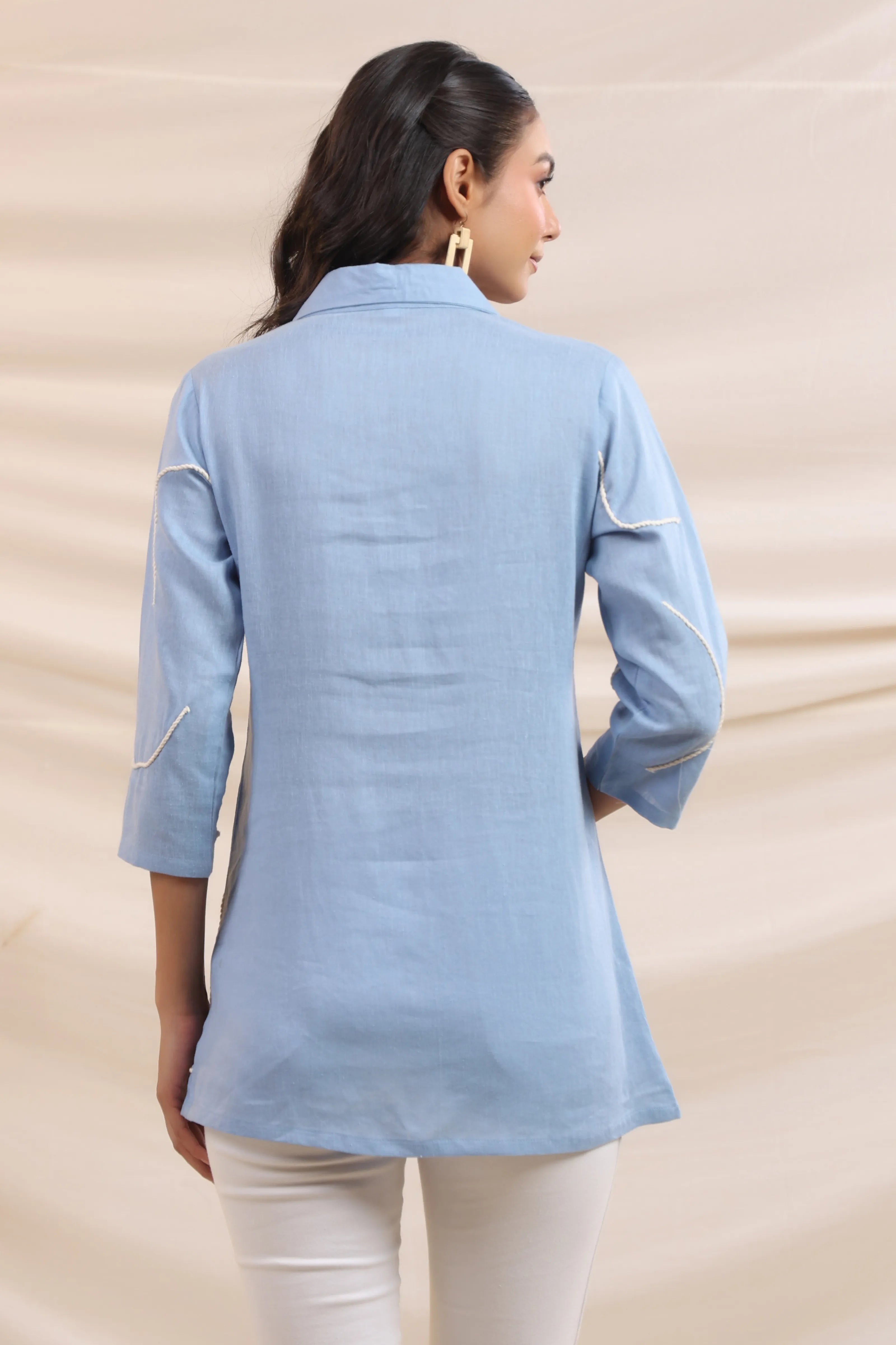 Sky Blue Cord Work Tunic in Cotton Linen