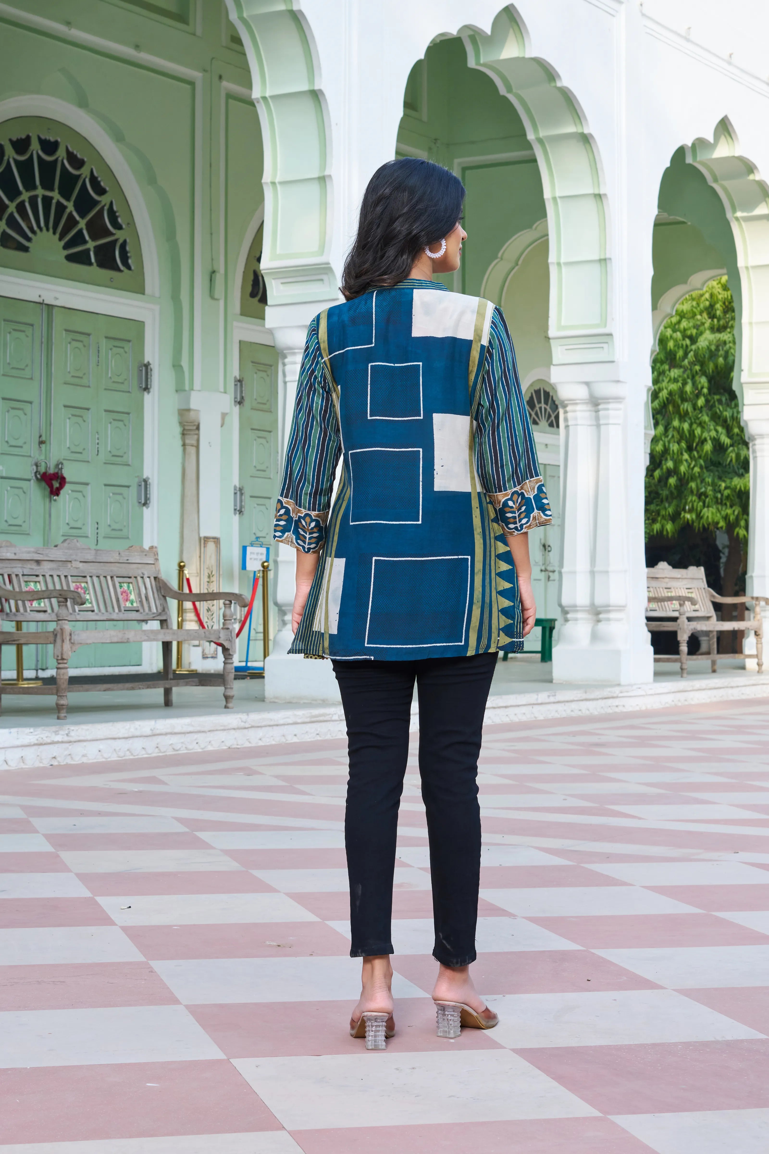 Blue Mosaic Handblock Tunic in Viscose Silk