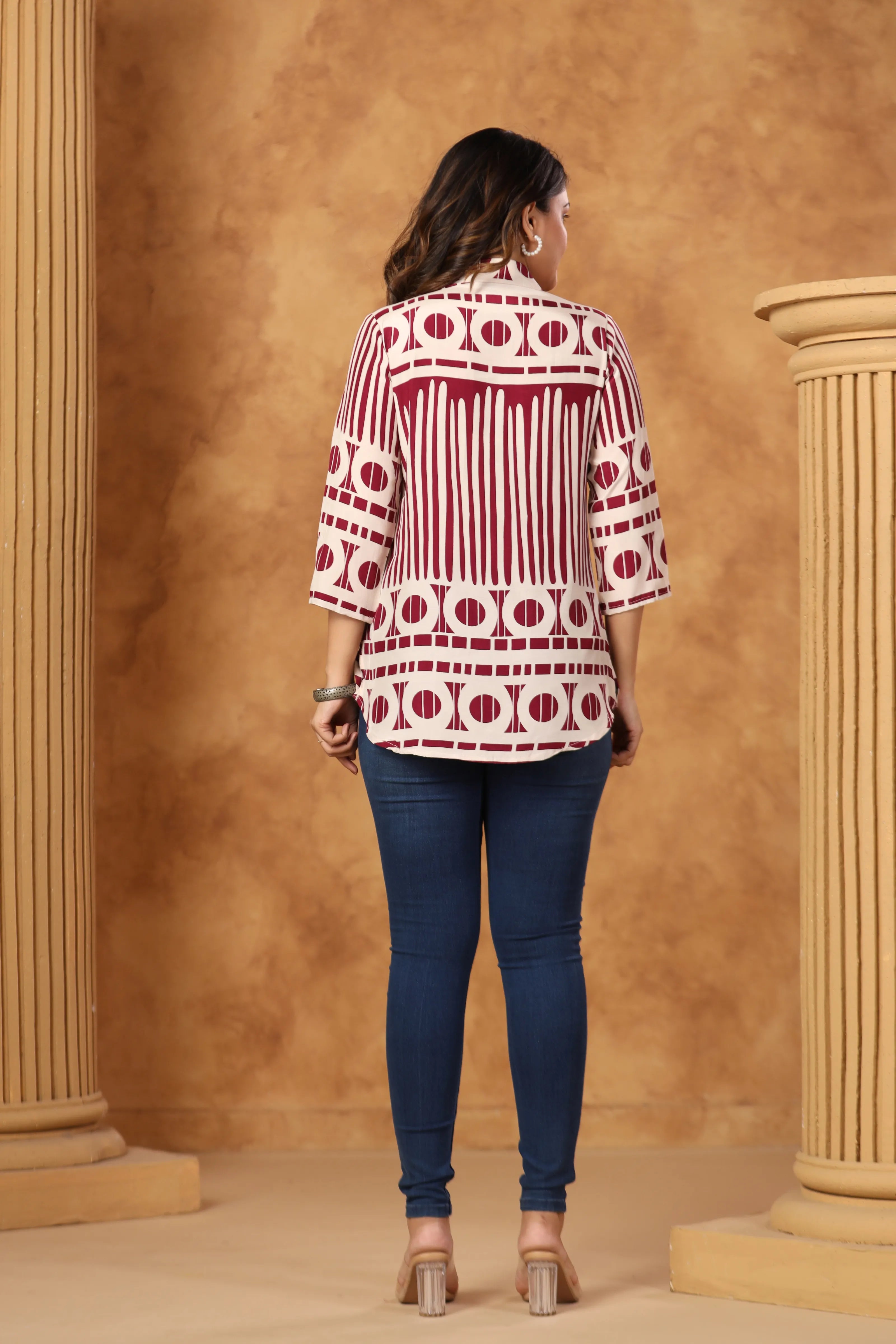 Wine Abstract Printed Tunic in Russian Silk