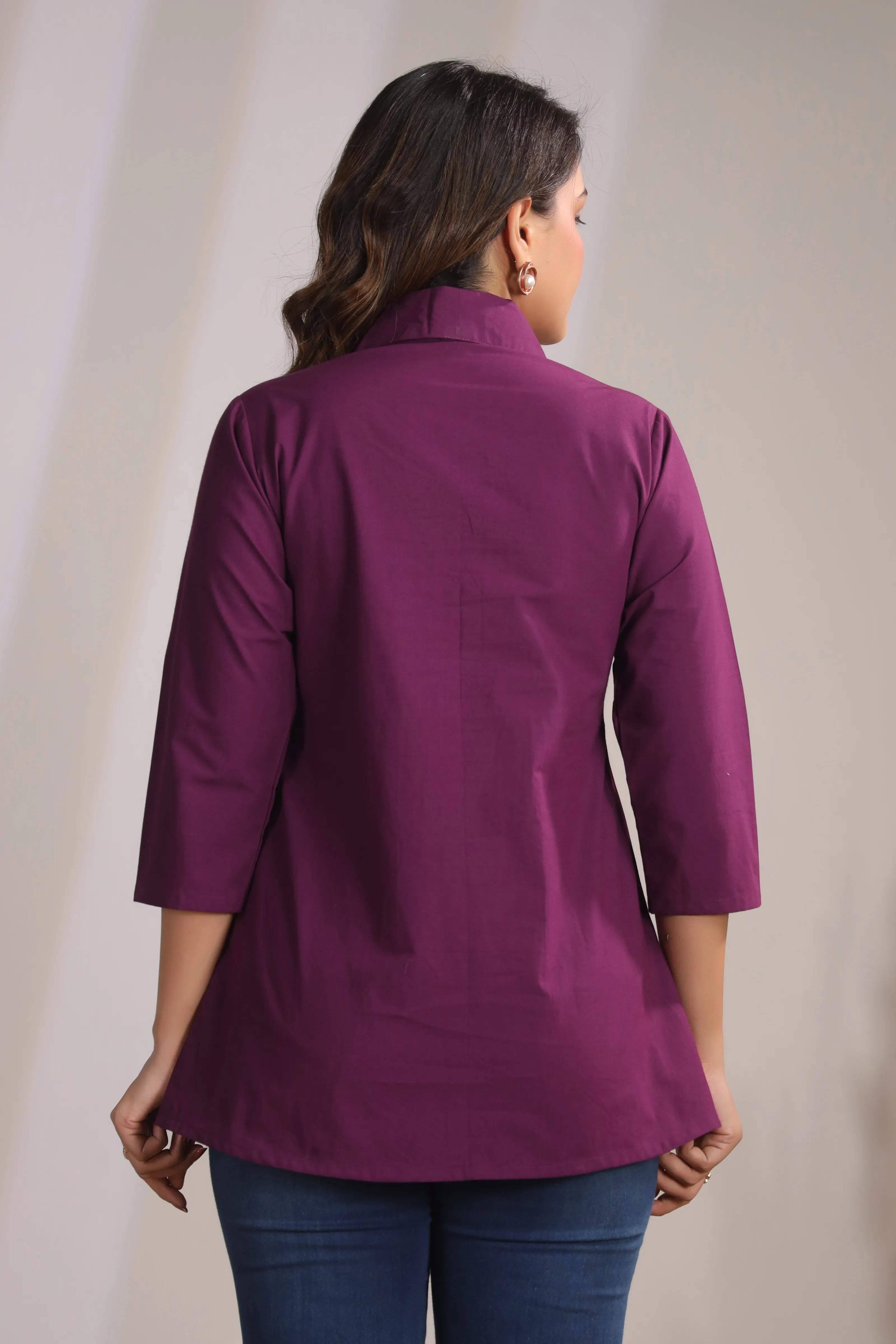 Dark Purple Cord Work Tunic with Lapel Collar