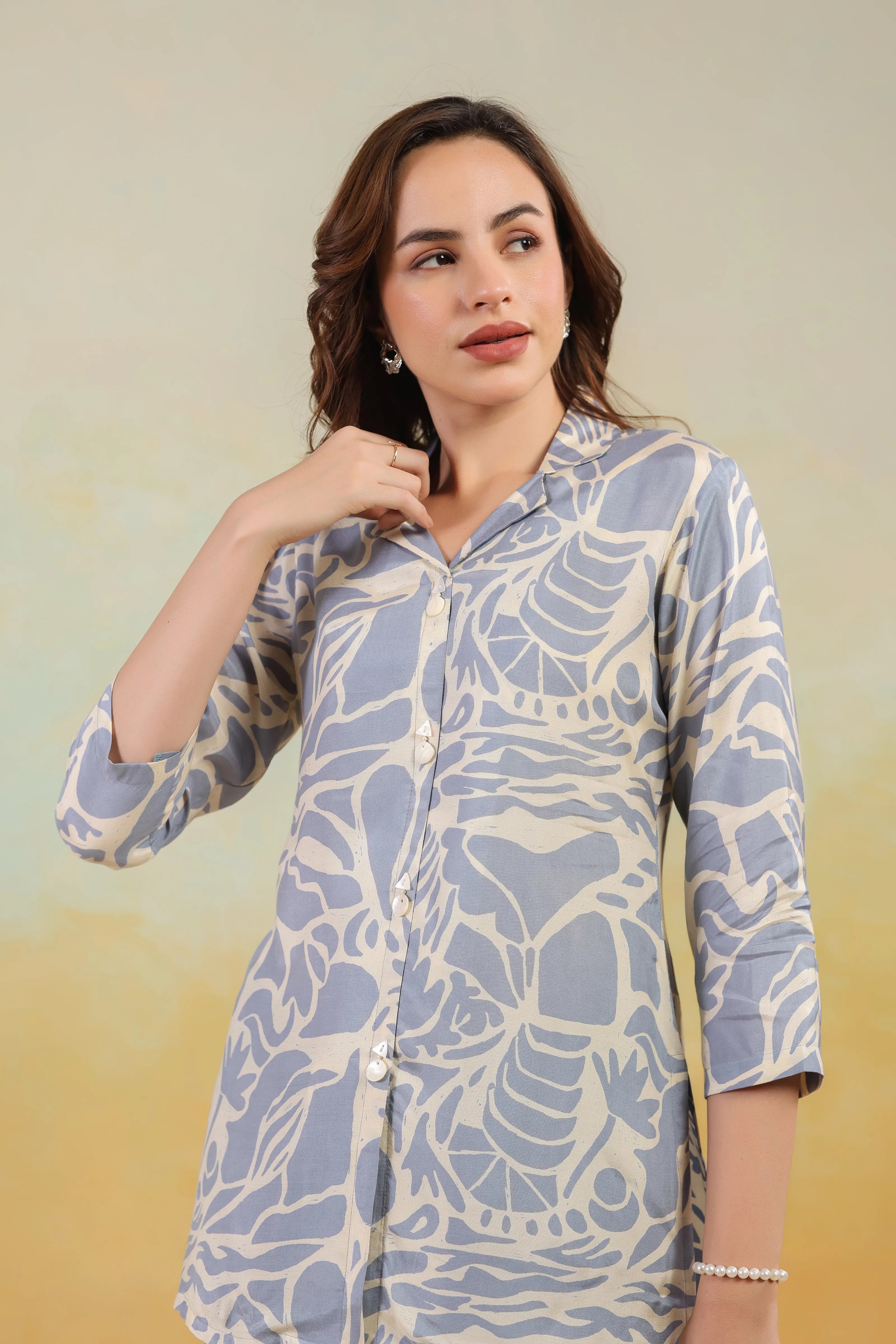 Cream & Grey Abstract Printed Tunic in Russian Silk