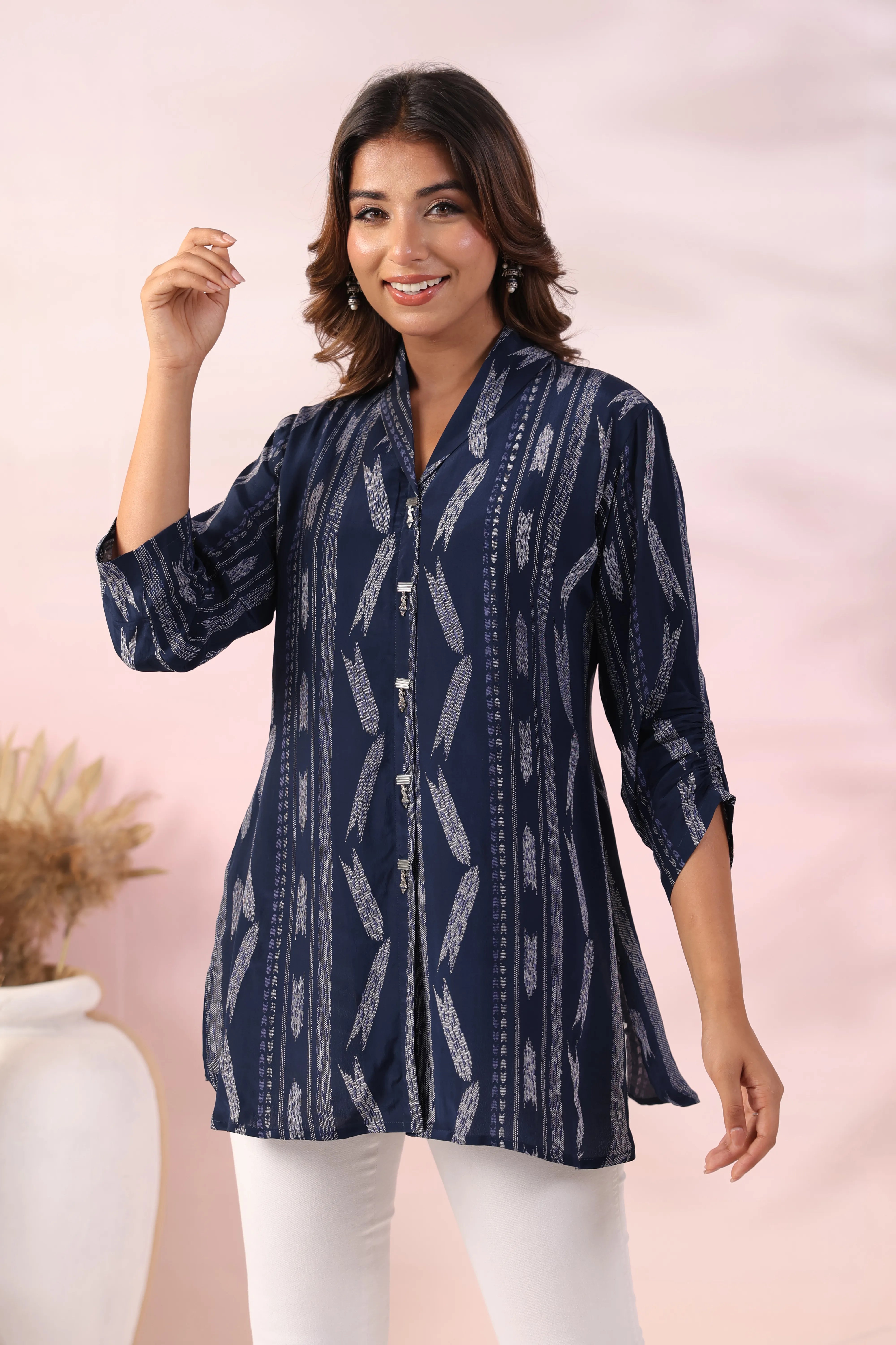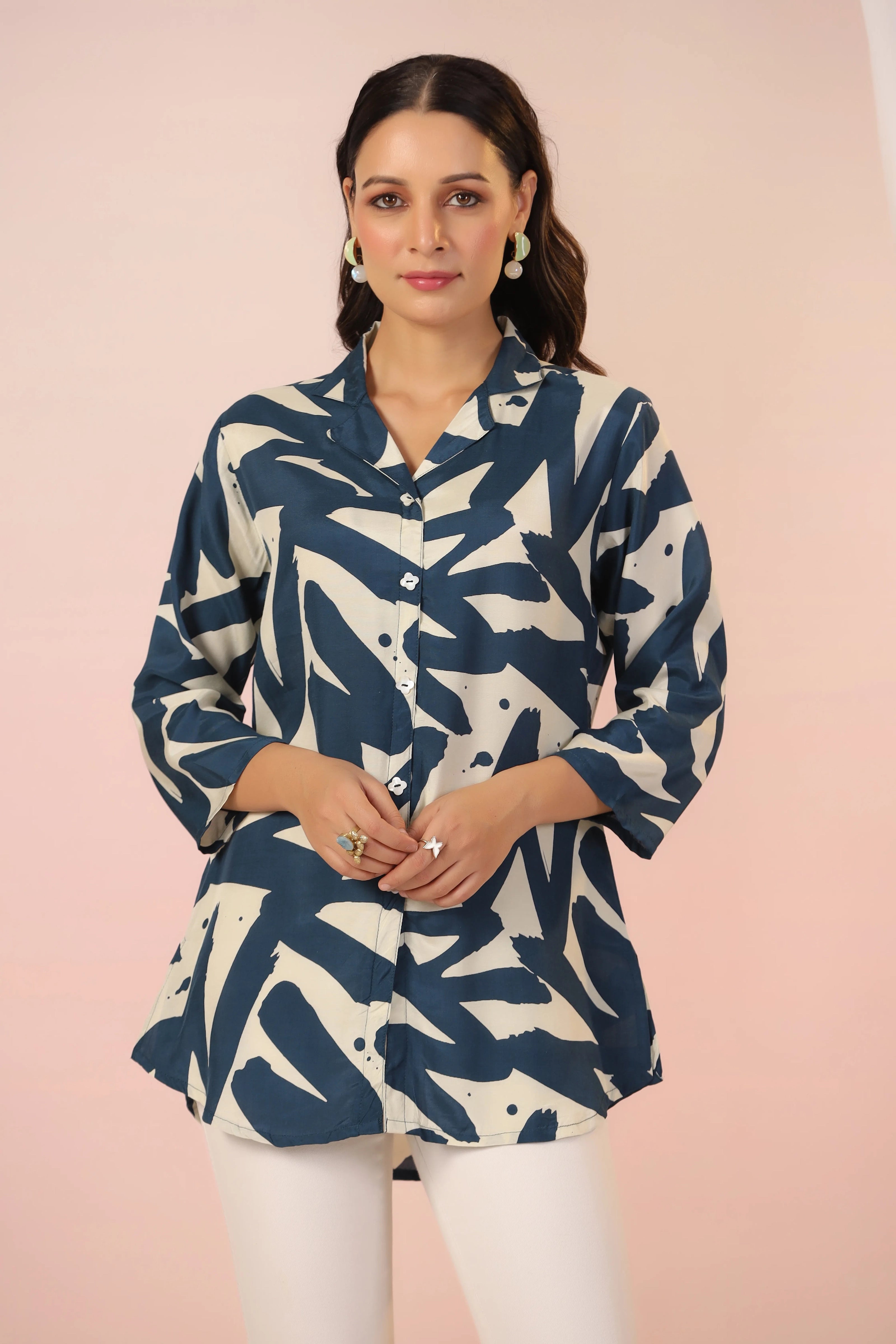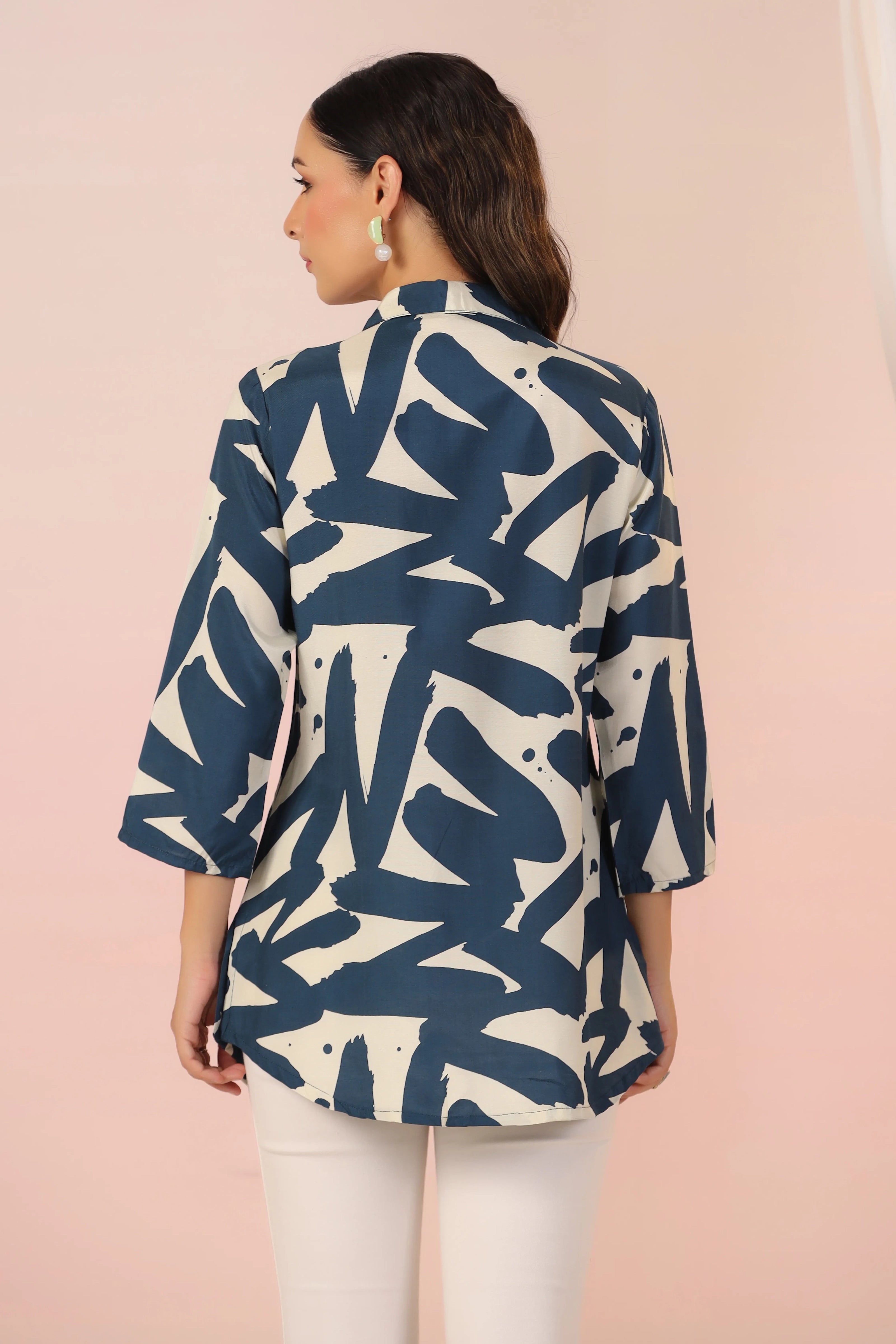 Navy Blue Base Cream Color abstract print Russian Silk Tunic