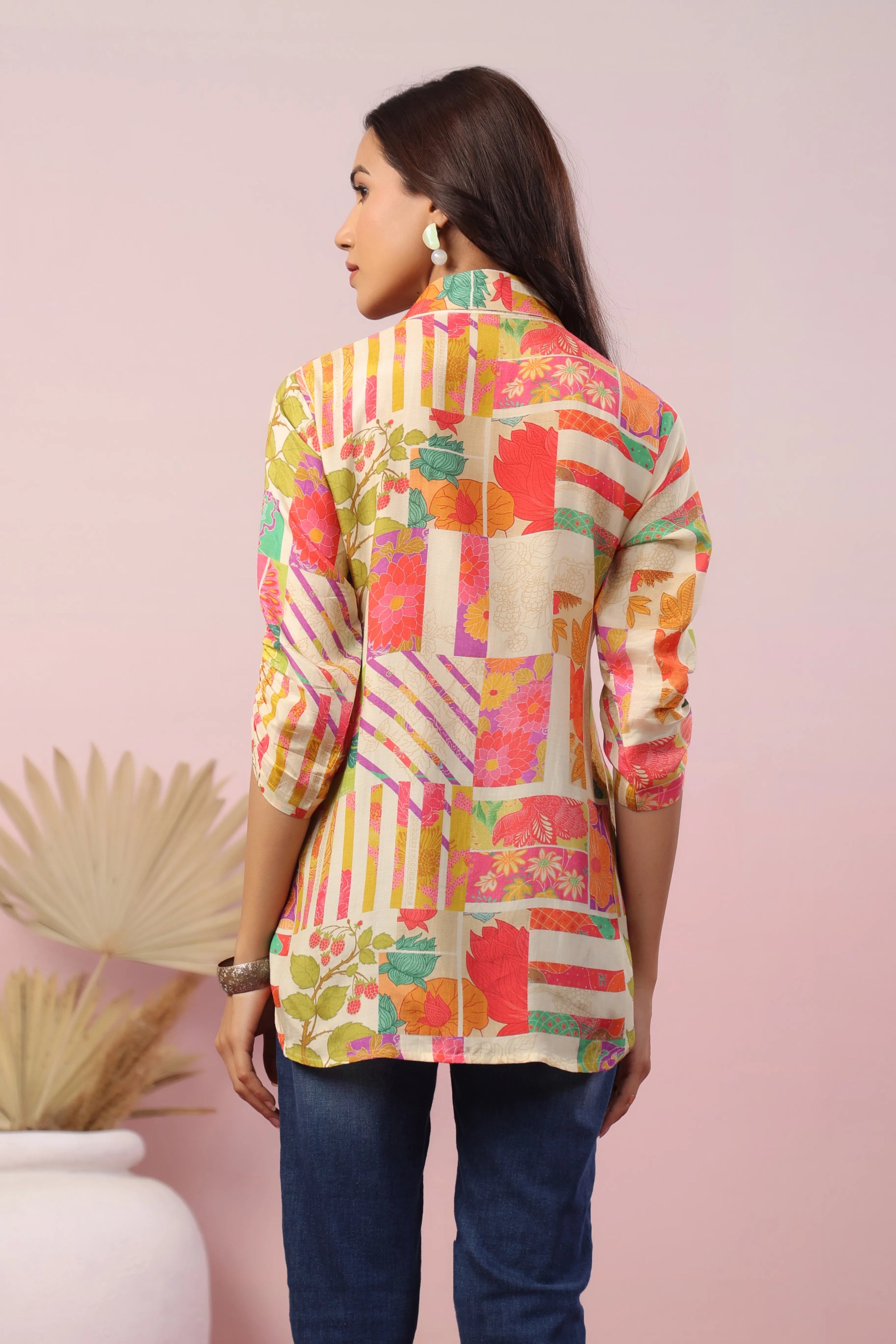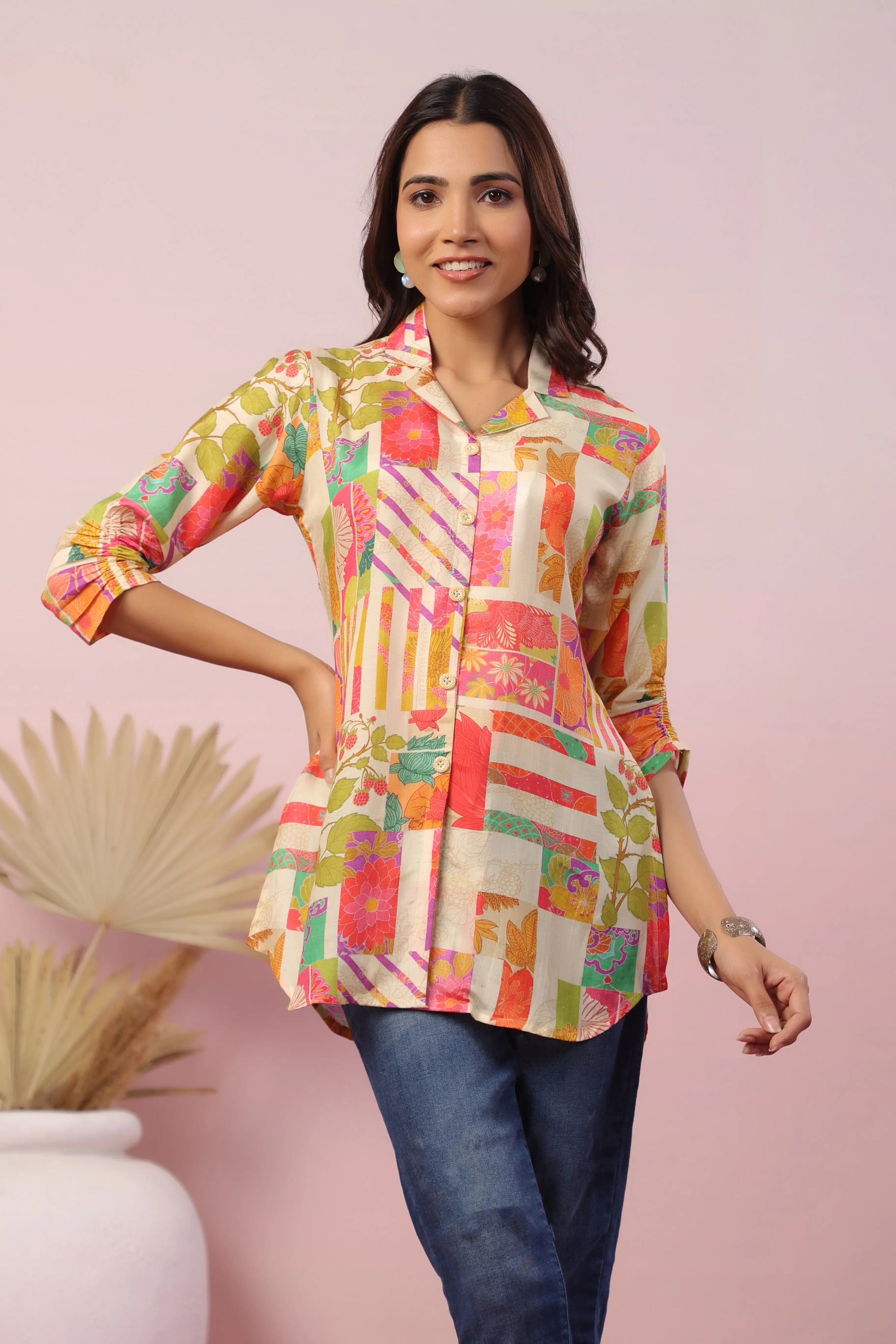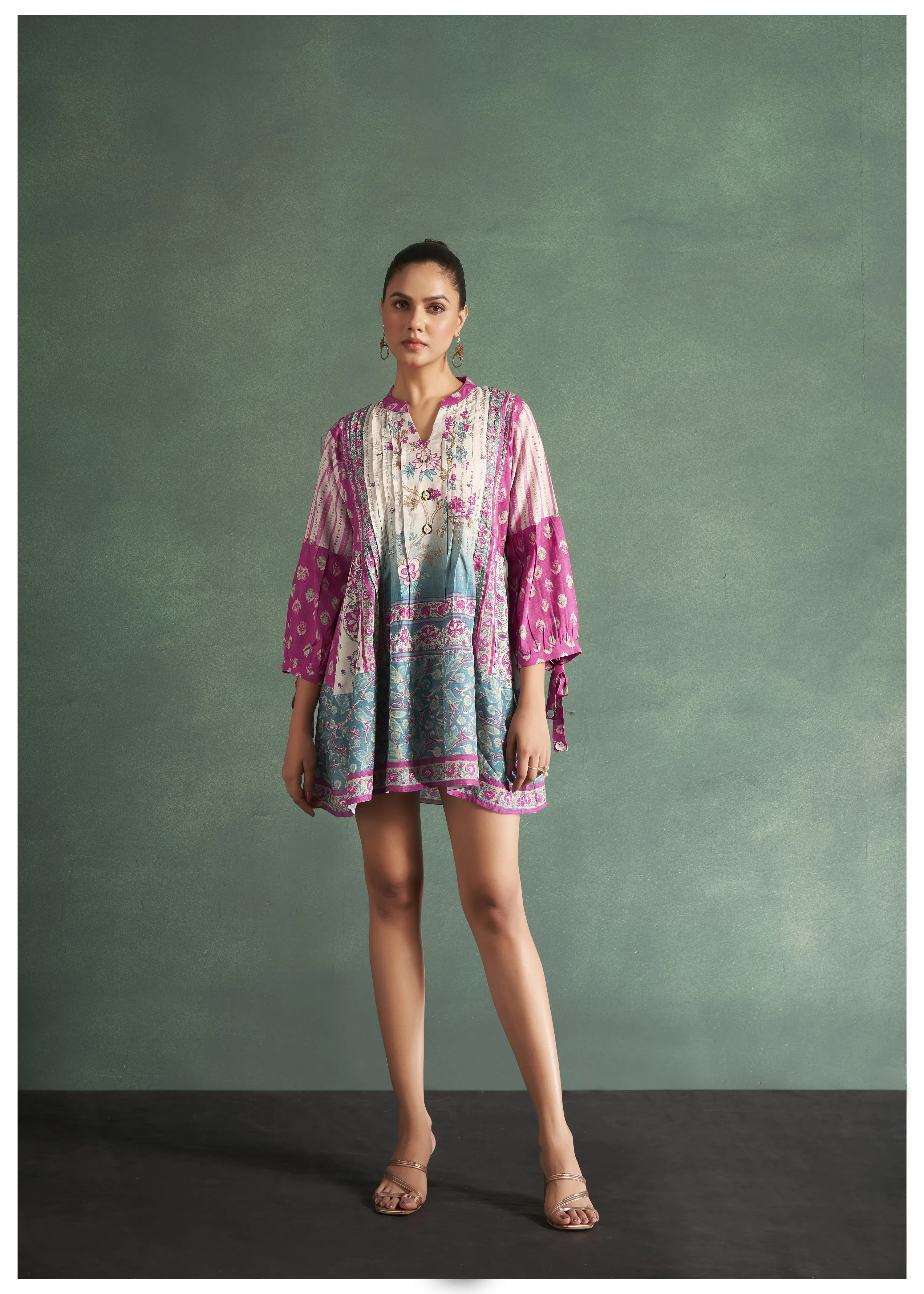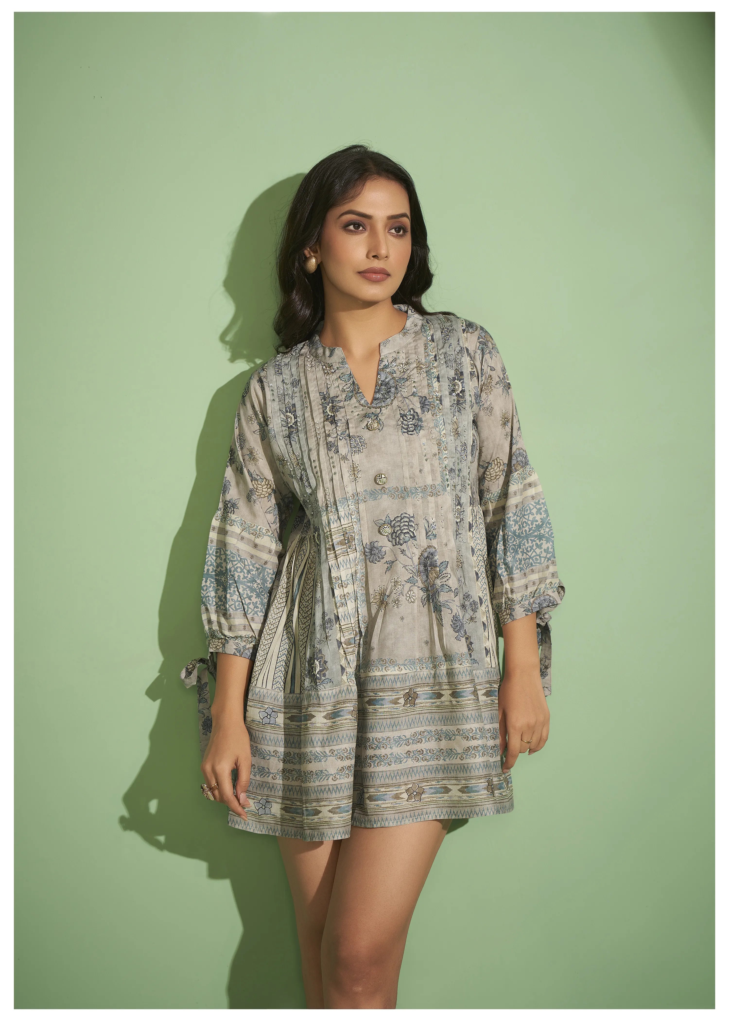 Multi-Floral Cotton Viscose Printed & Pleated Tunic