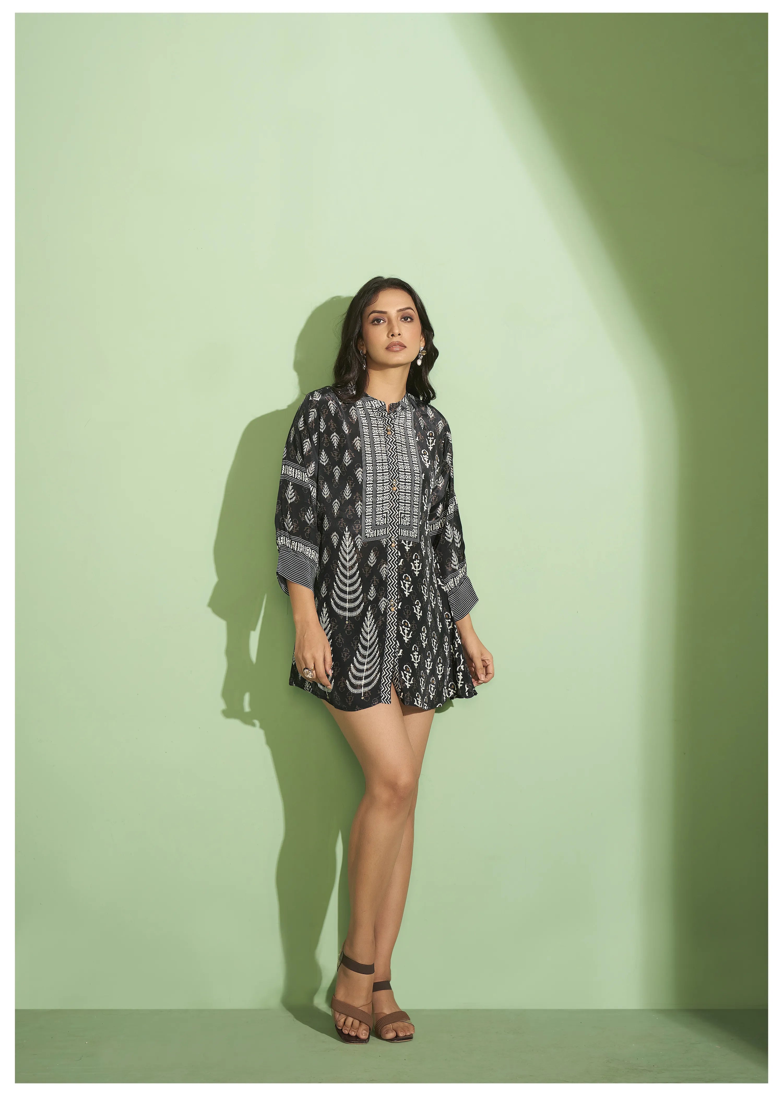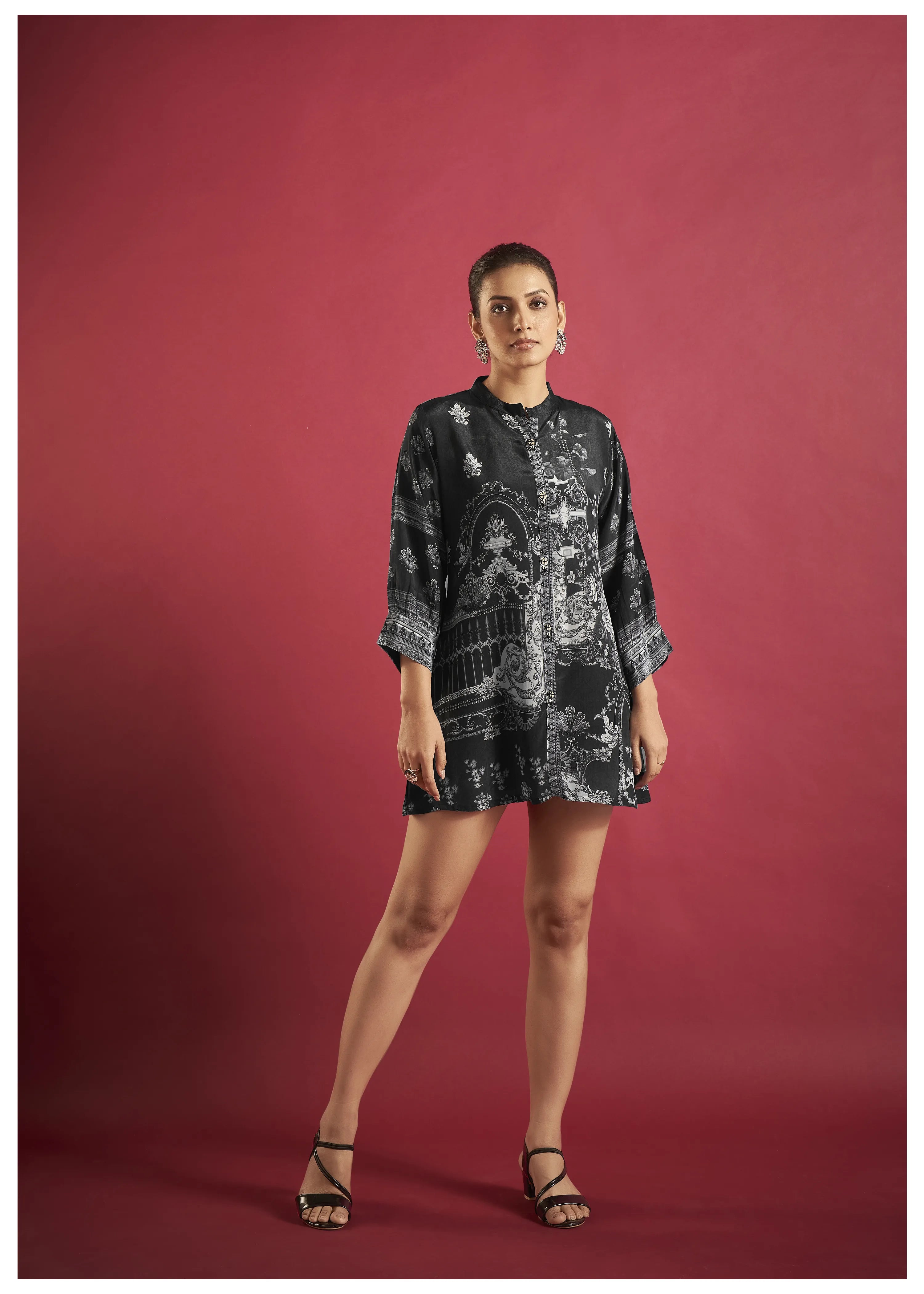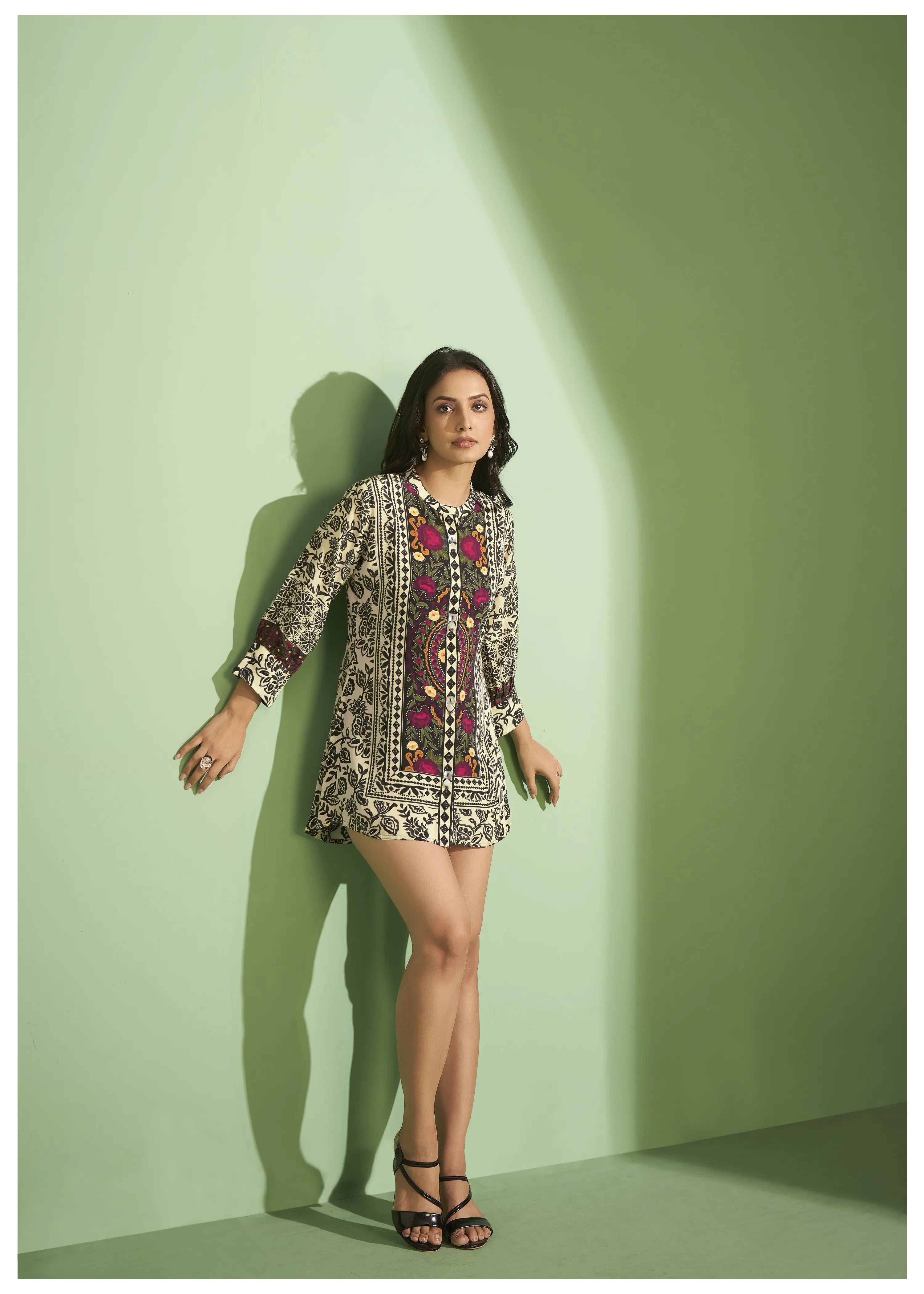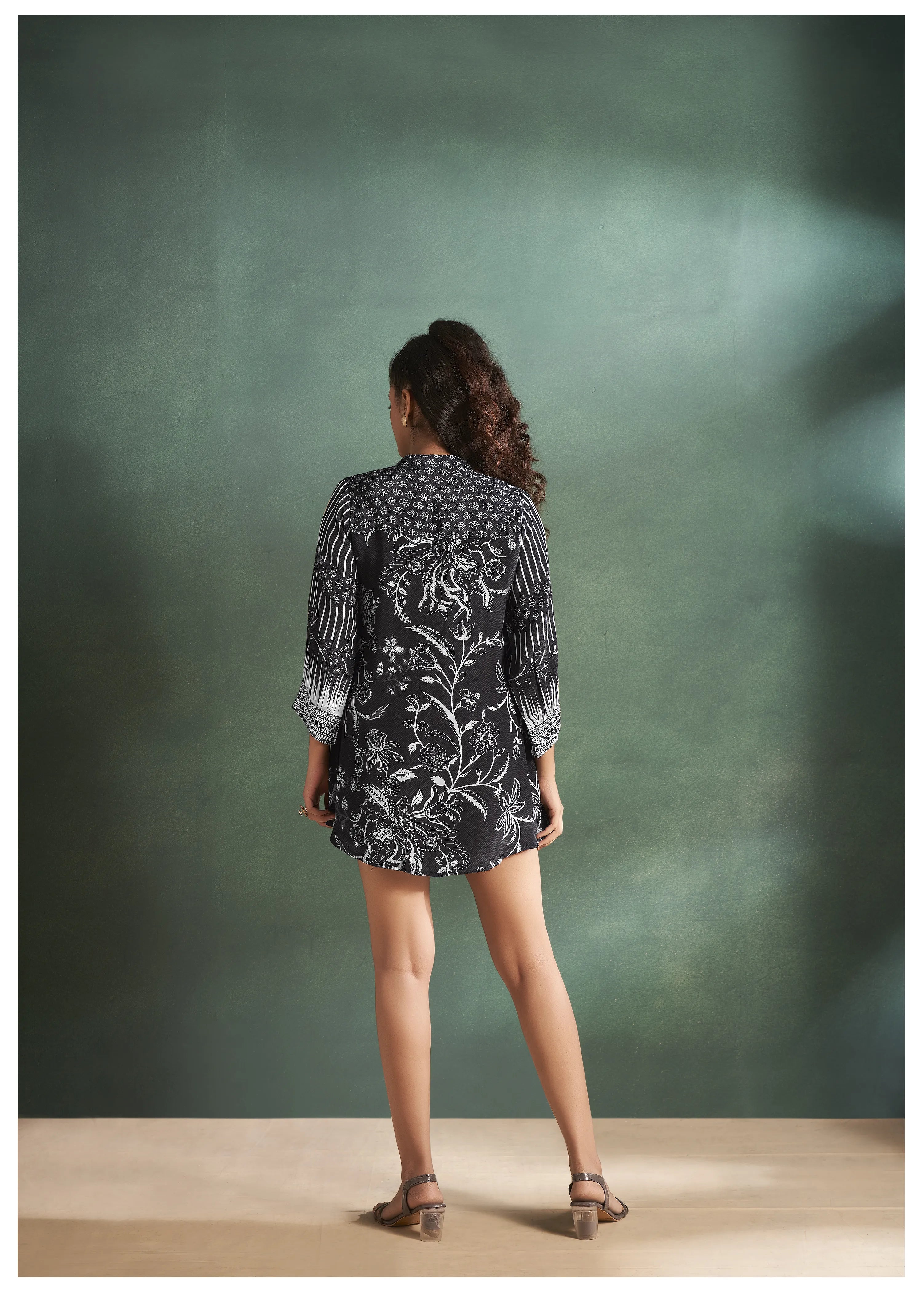 Cream Base with Crepe Black Placement Floral Printed Tunic