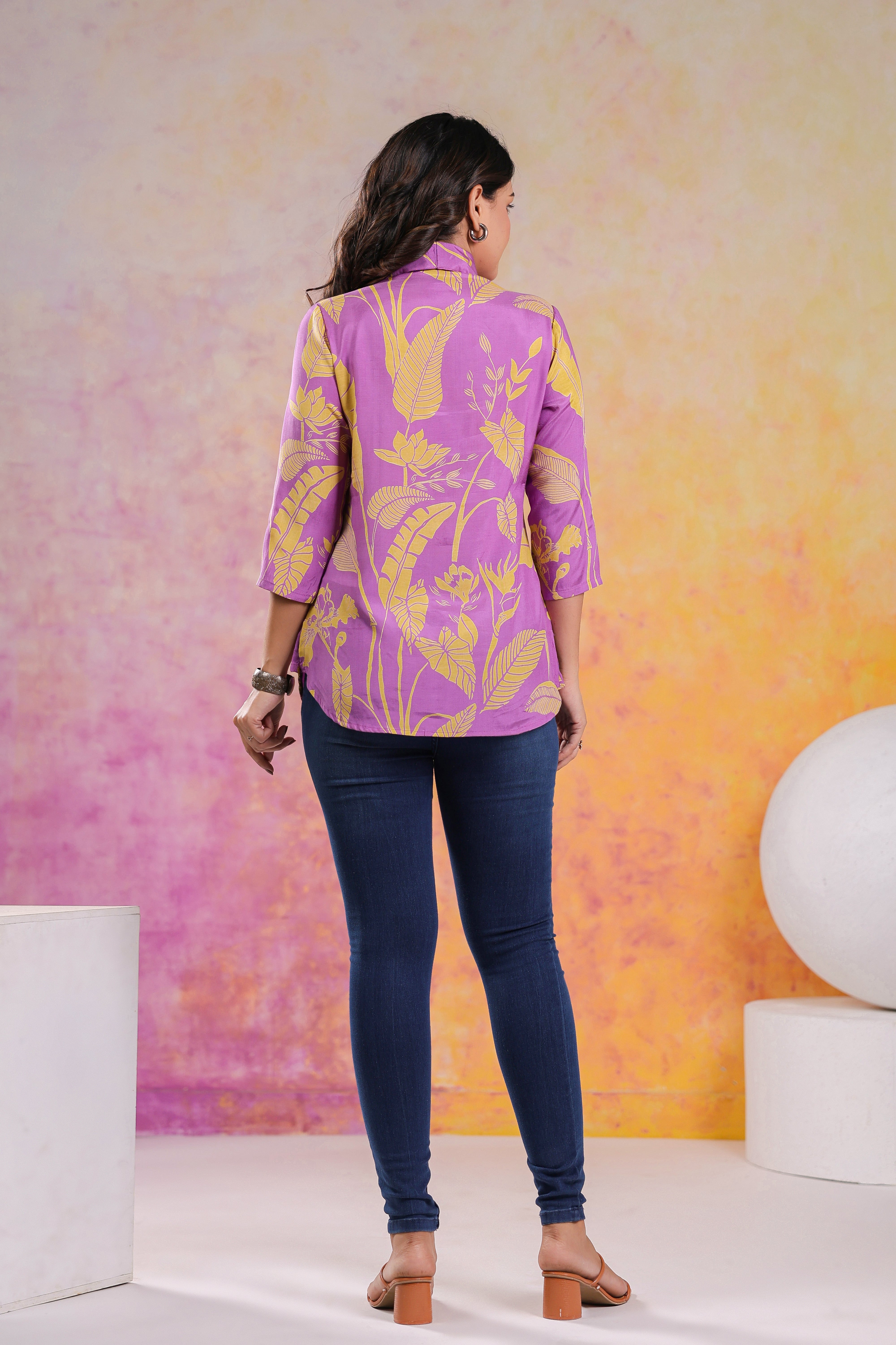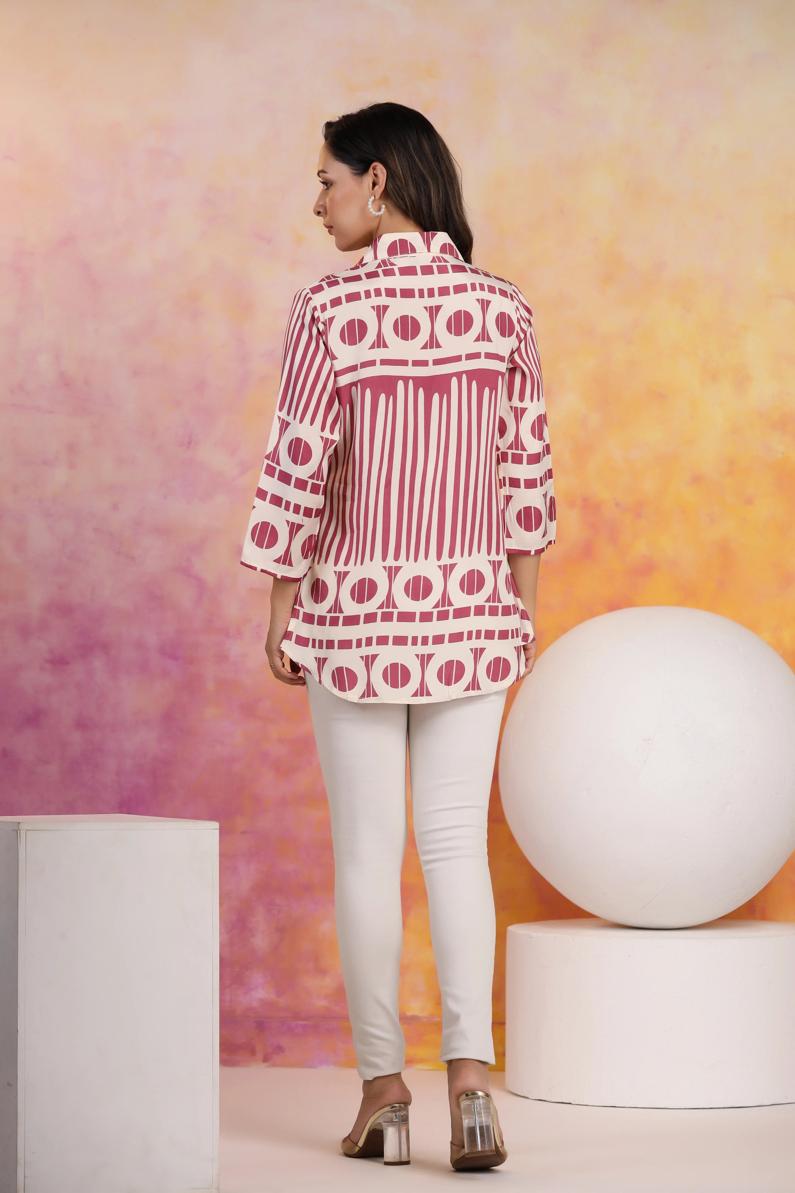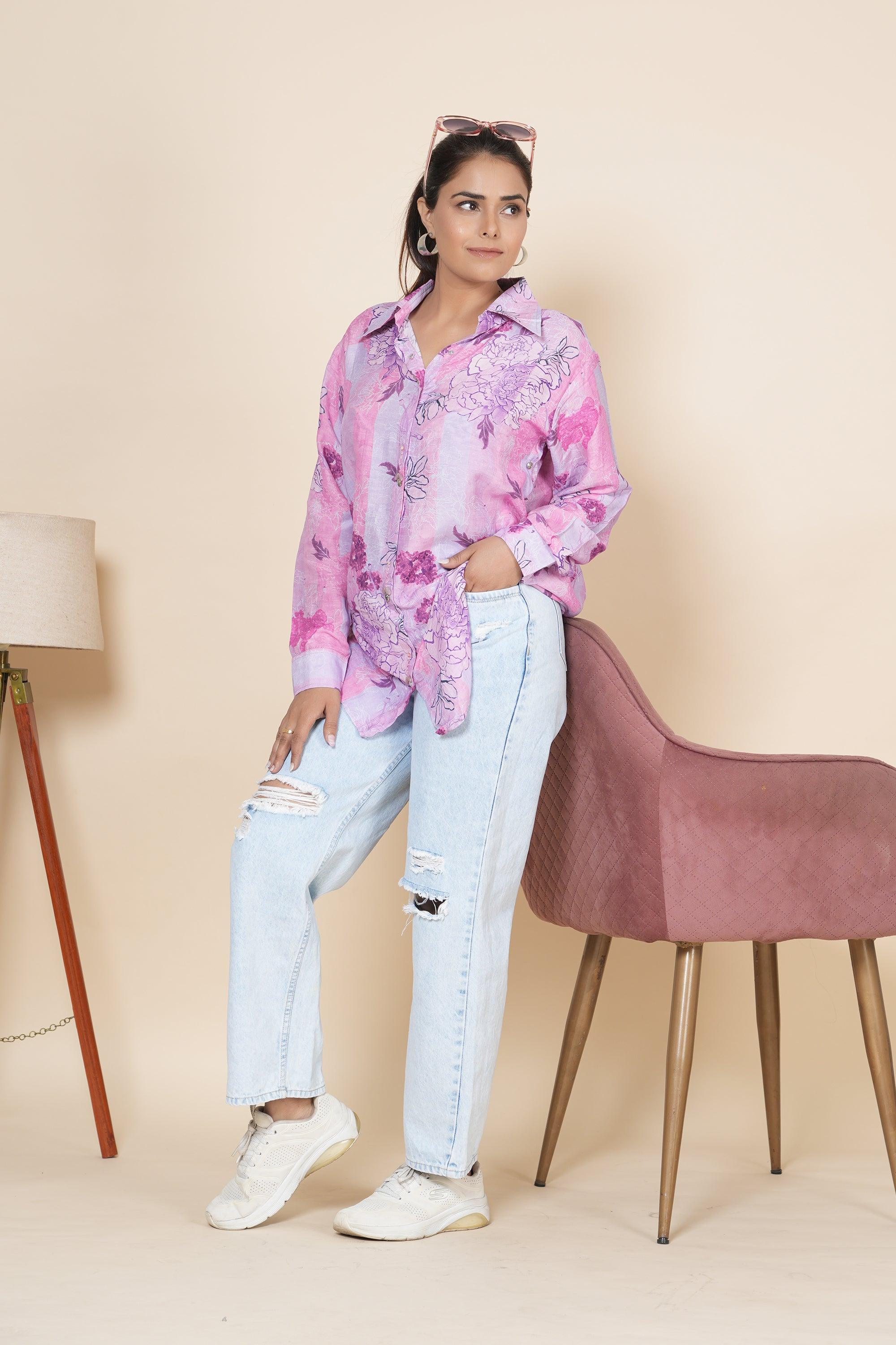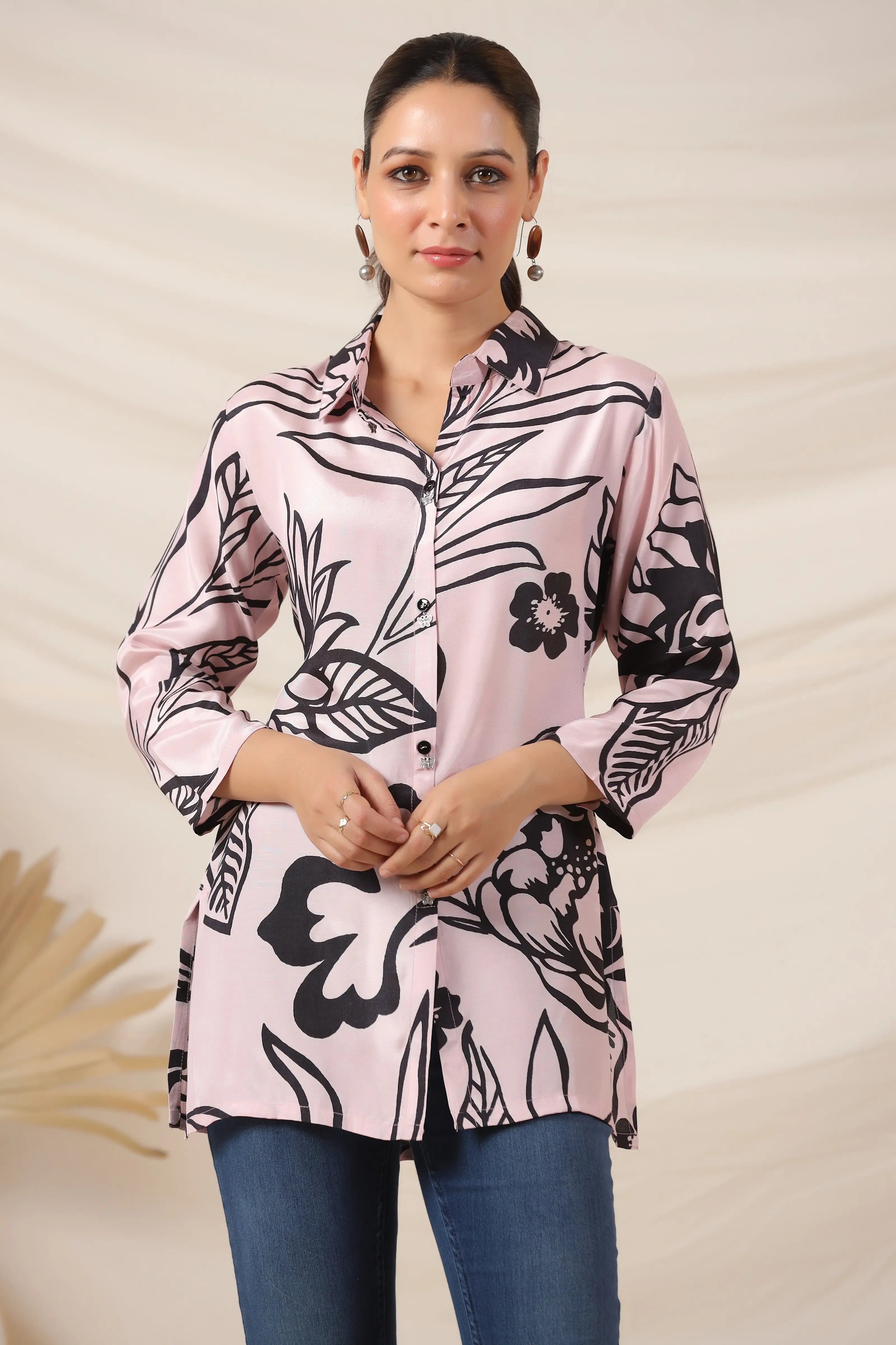 Shades Of Pink Floral Printed Shirt Style Tunic