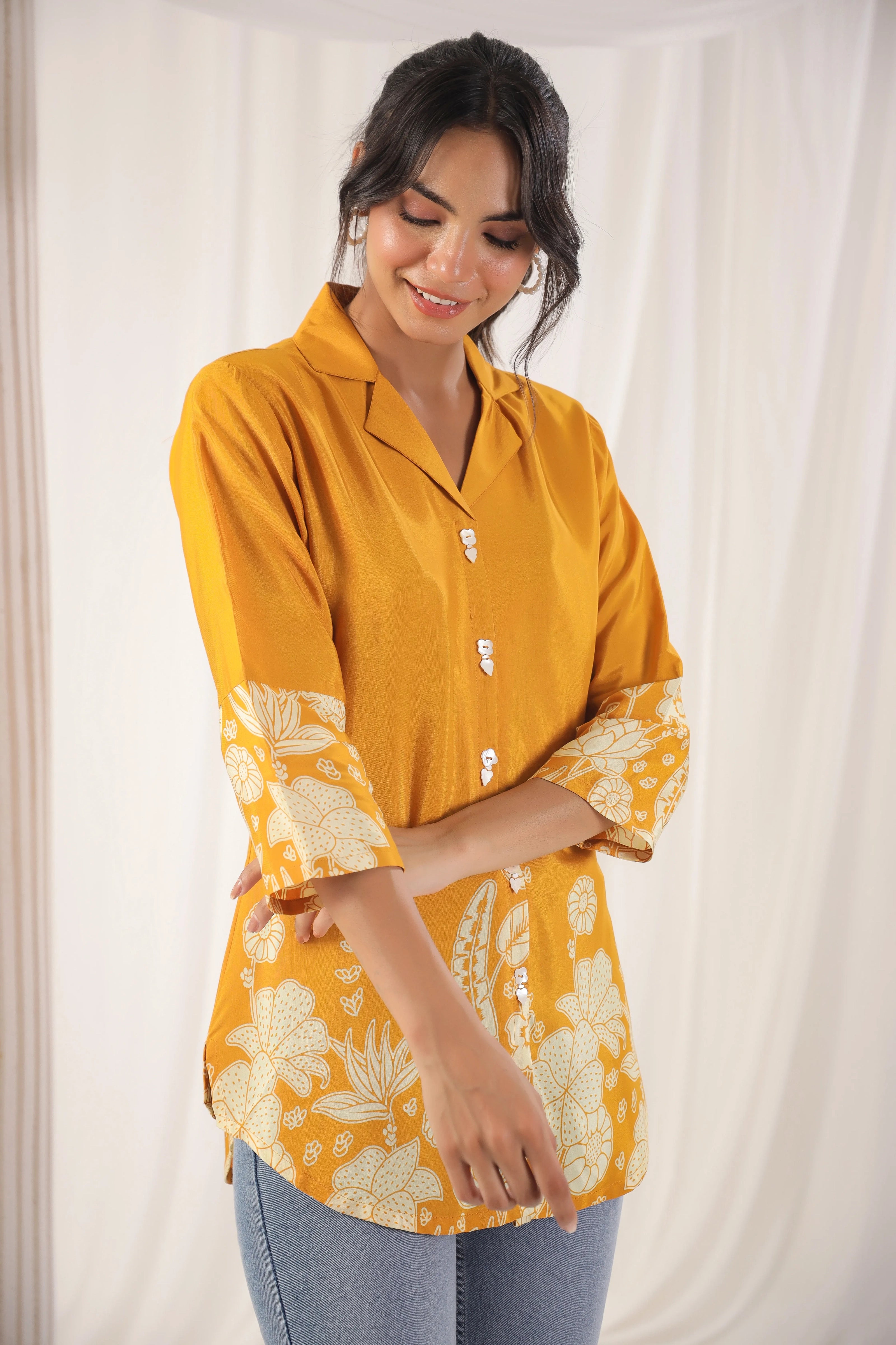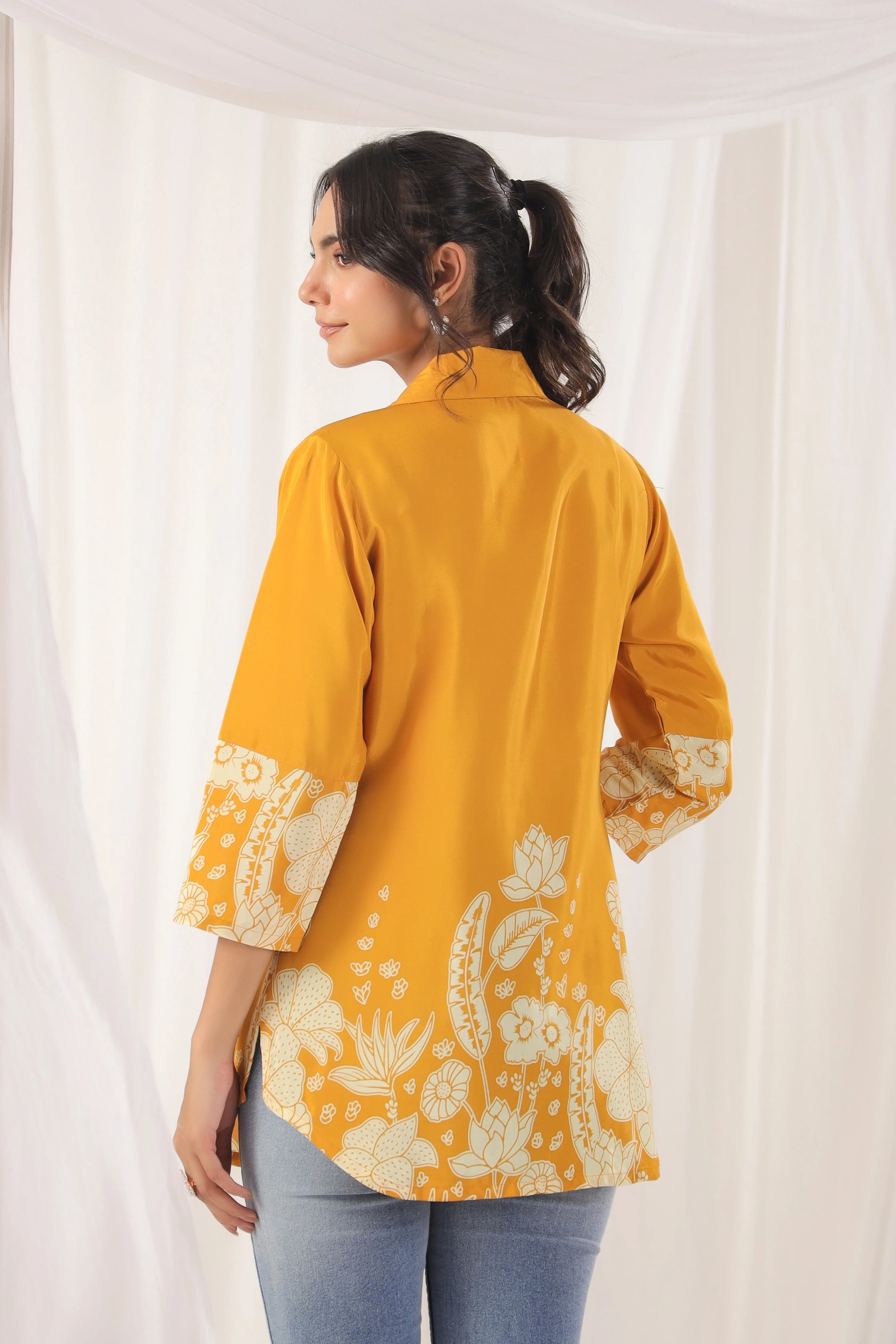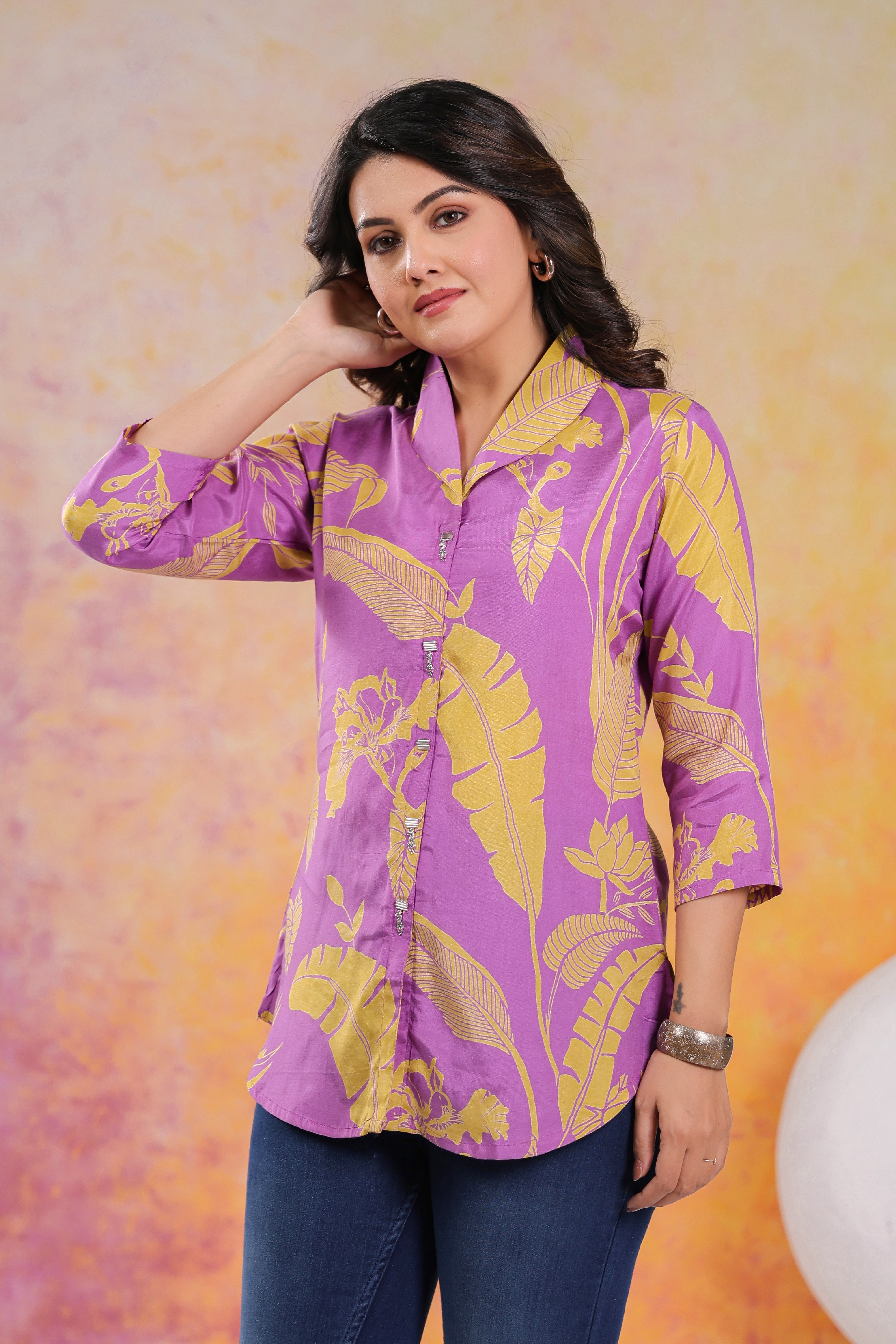 Lavender Base Yellow Color abstract print Russian Silk Tunic