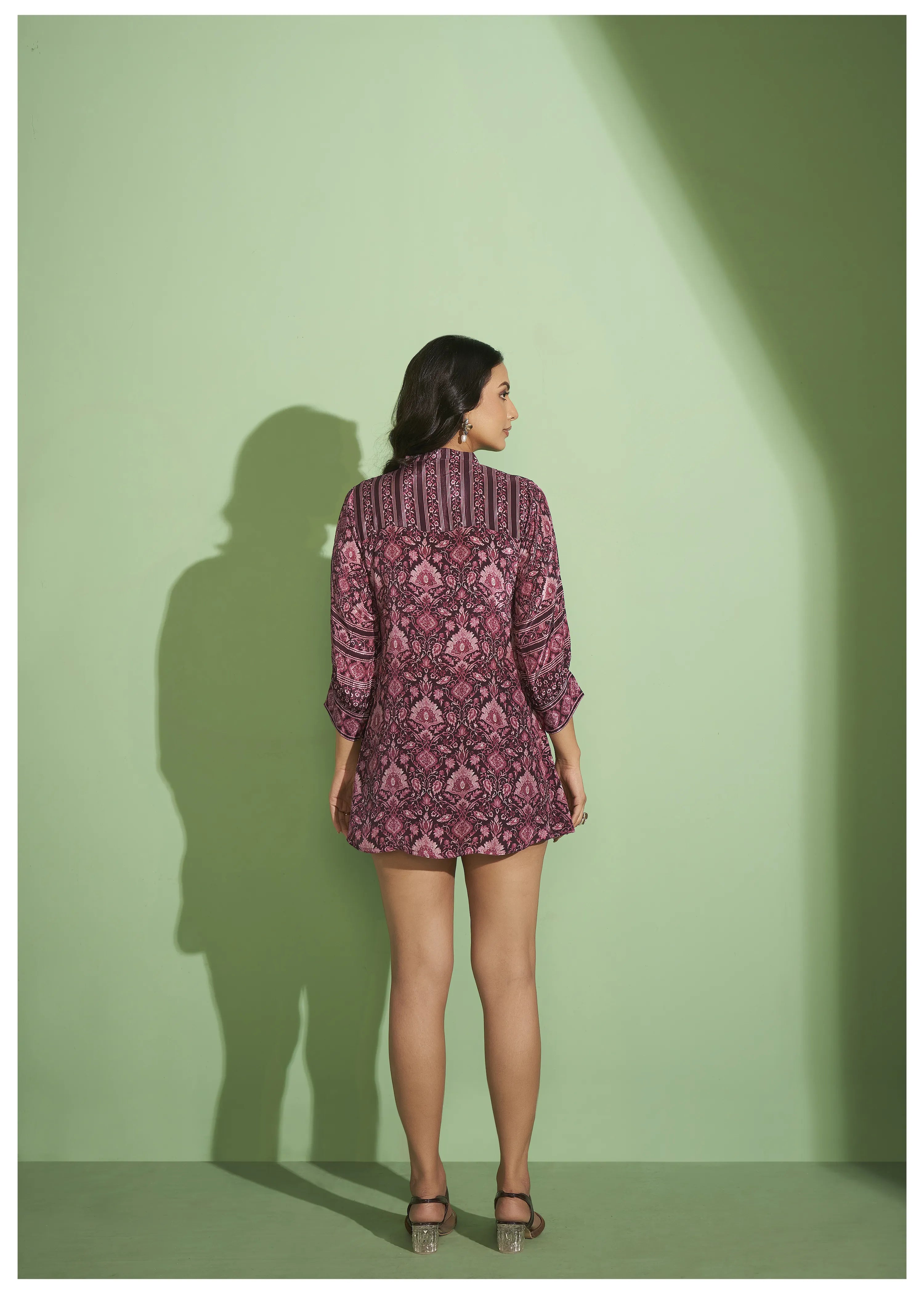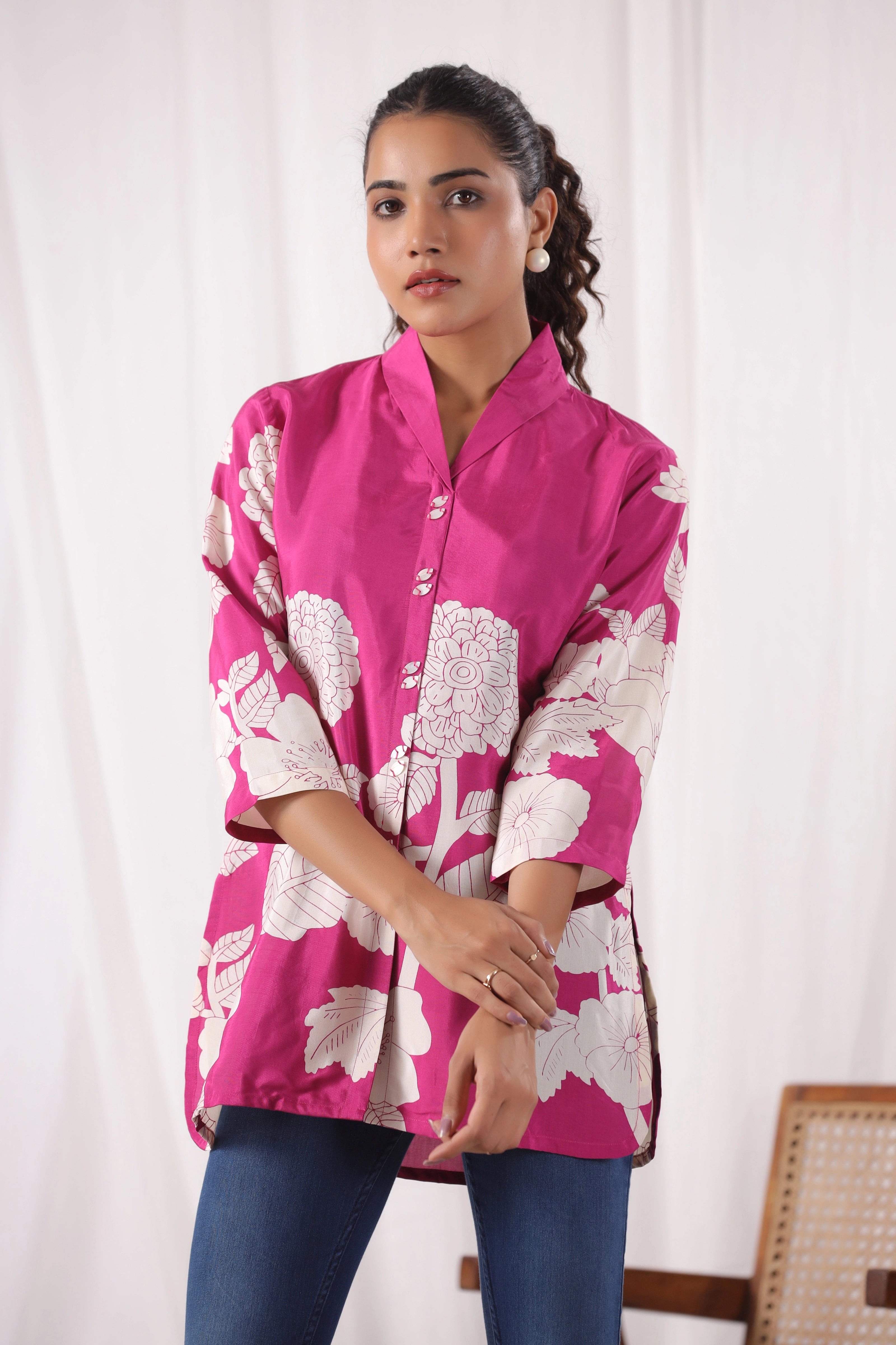 Sugar Plum Pink Floral Printed Russian Silk Top