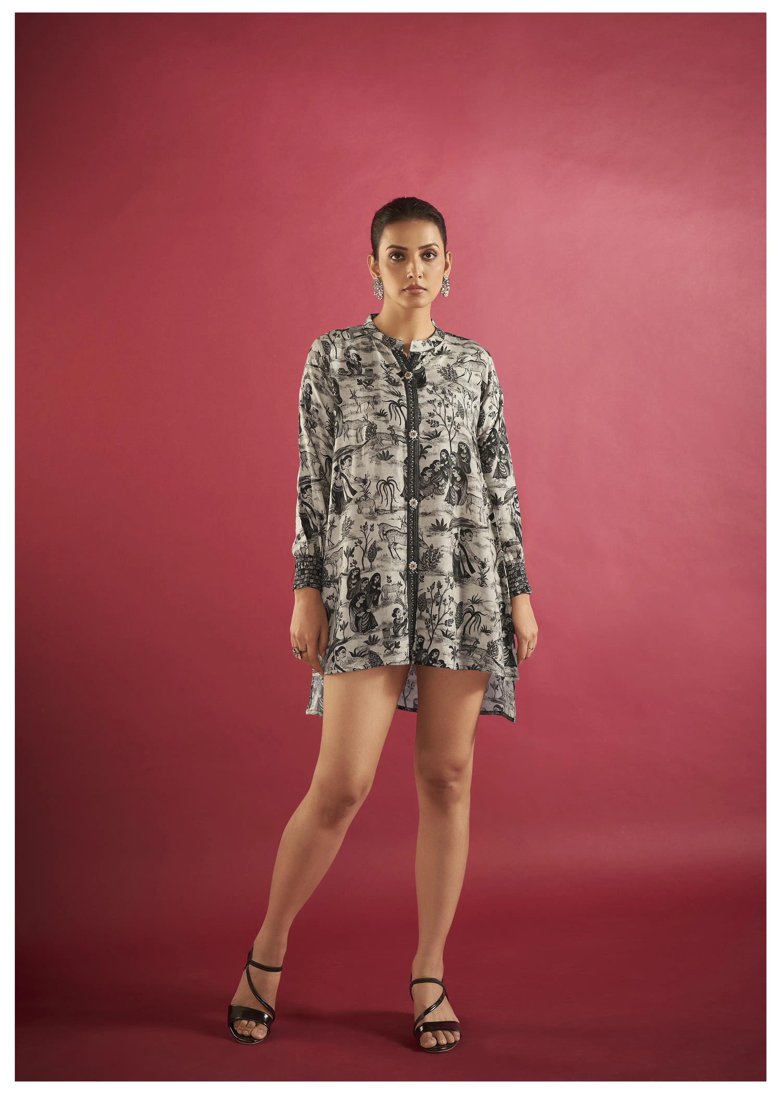 Grey Base Cream Color abstract print Russian Silk Tunic
