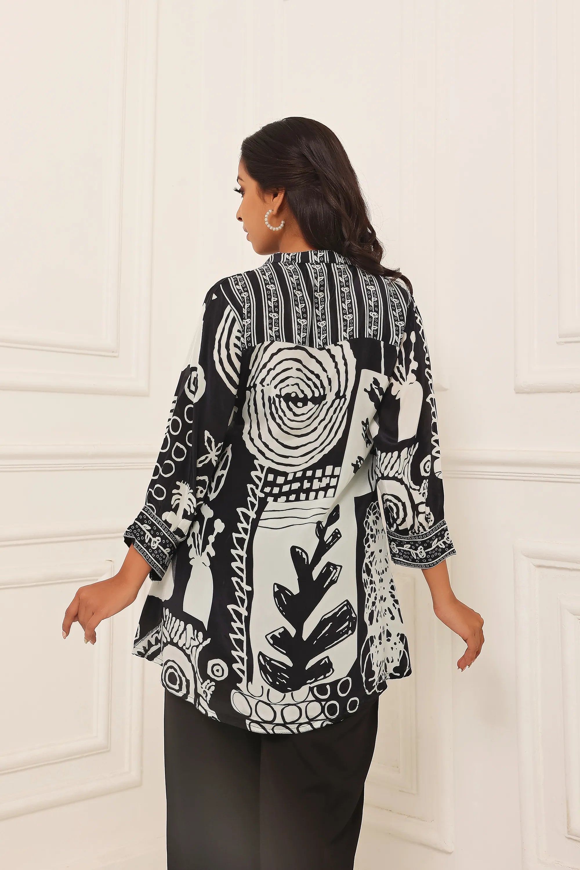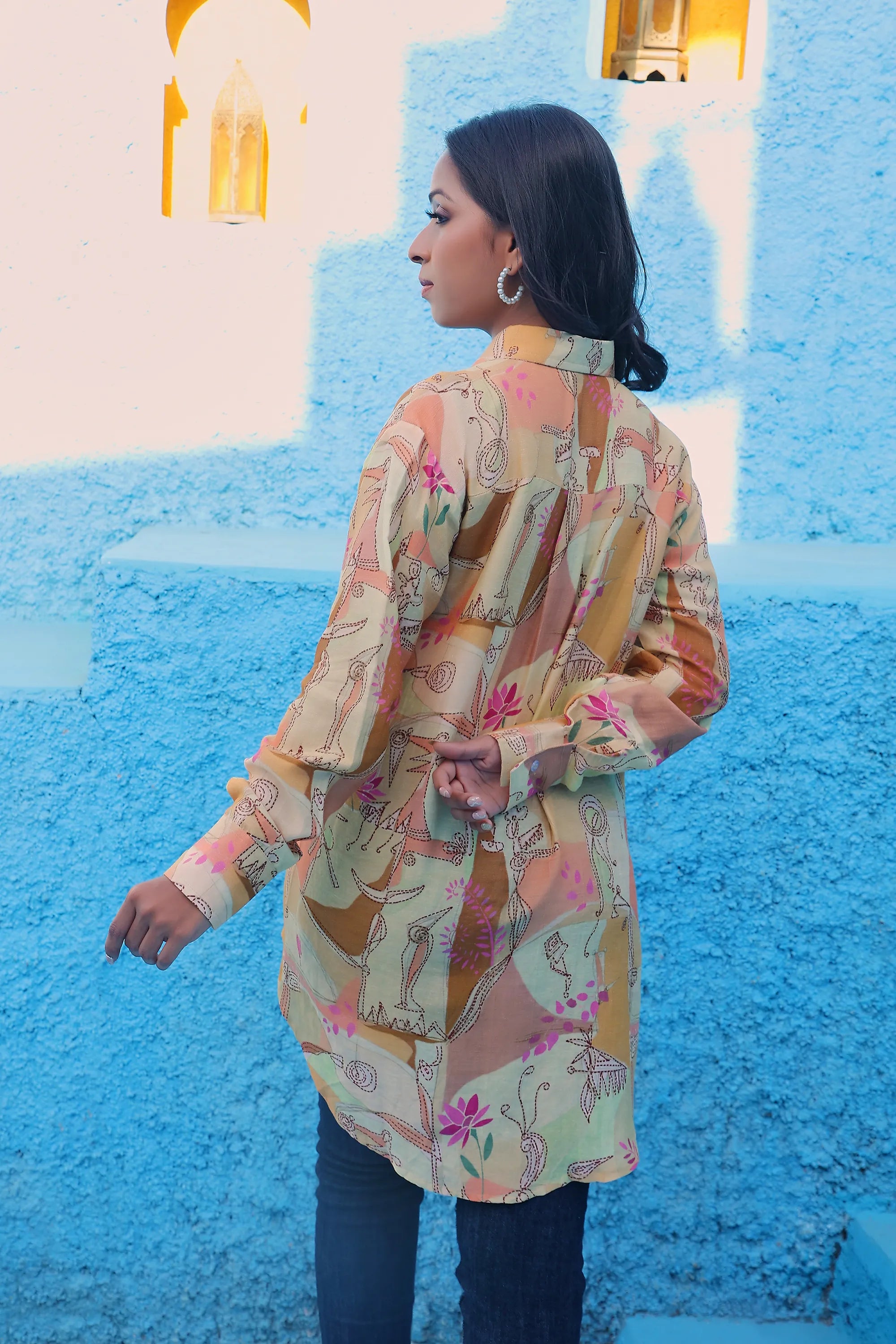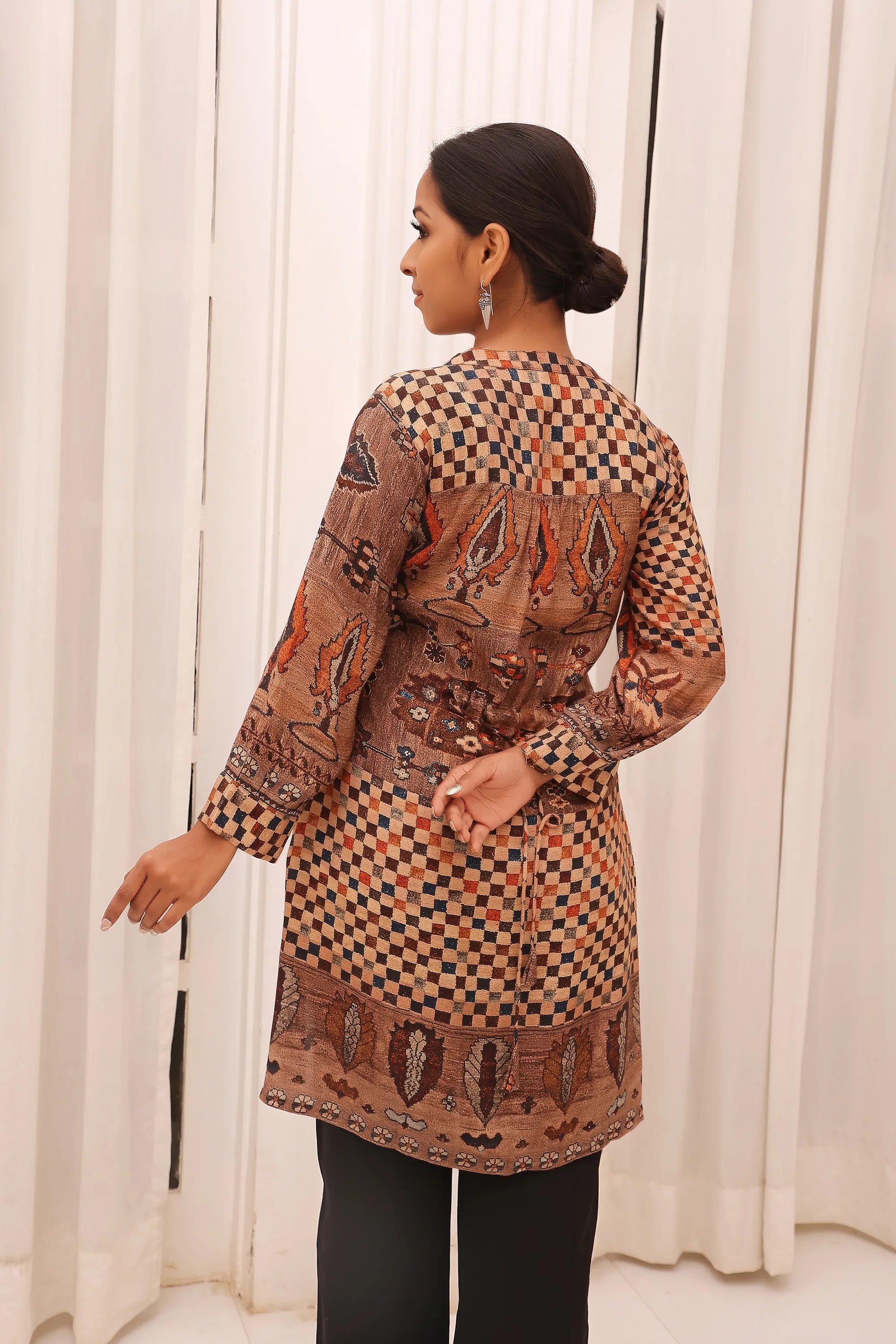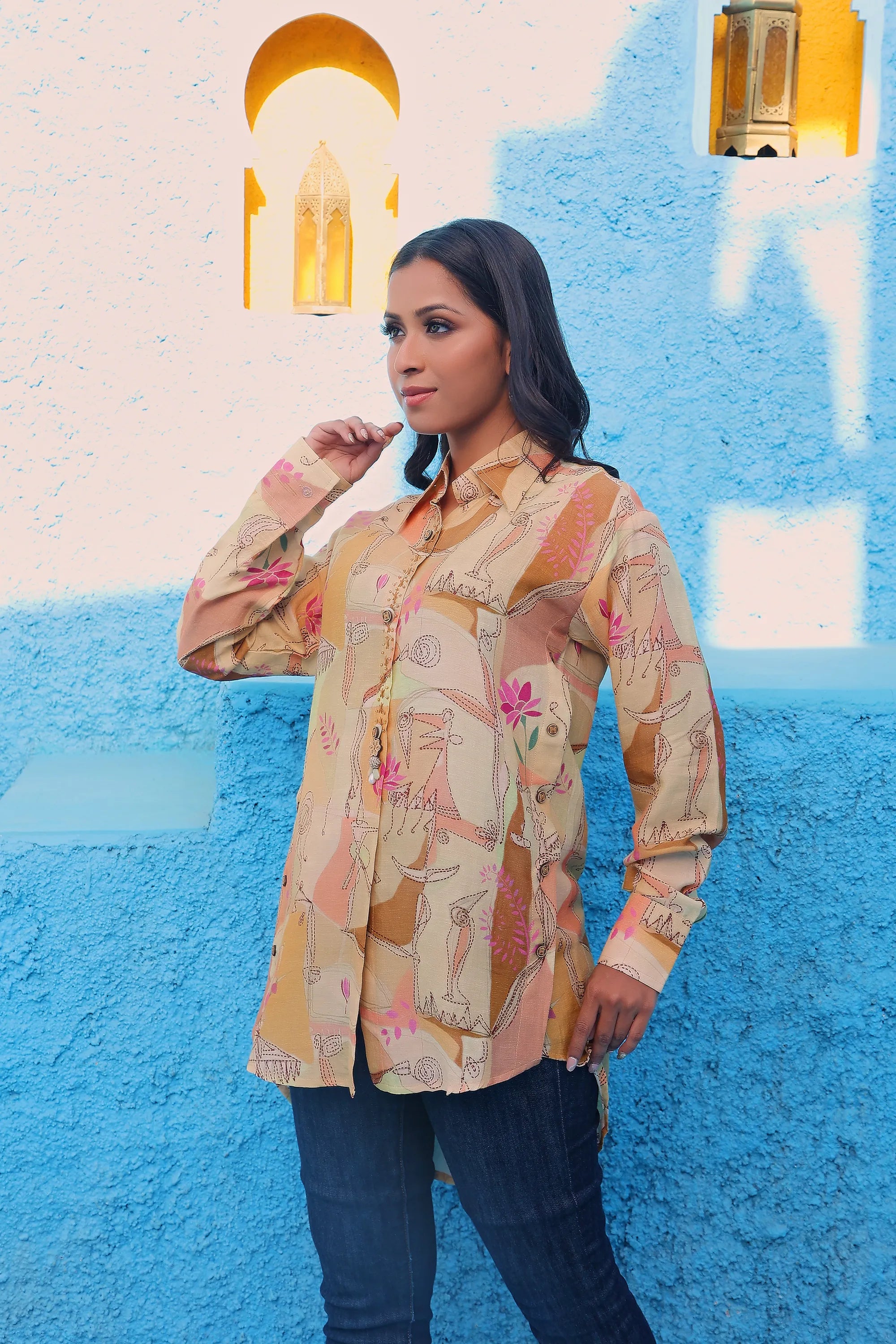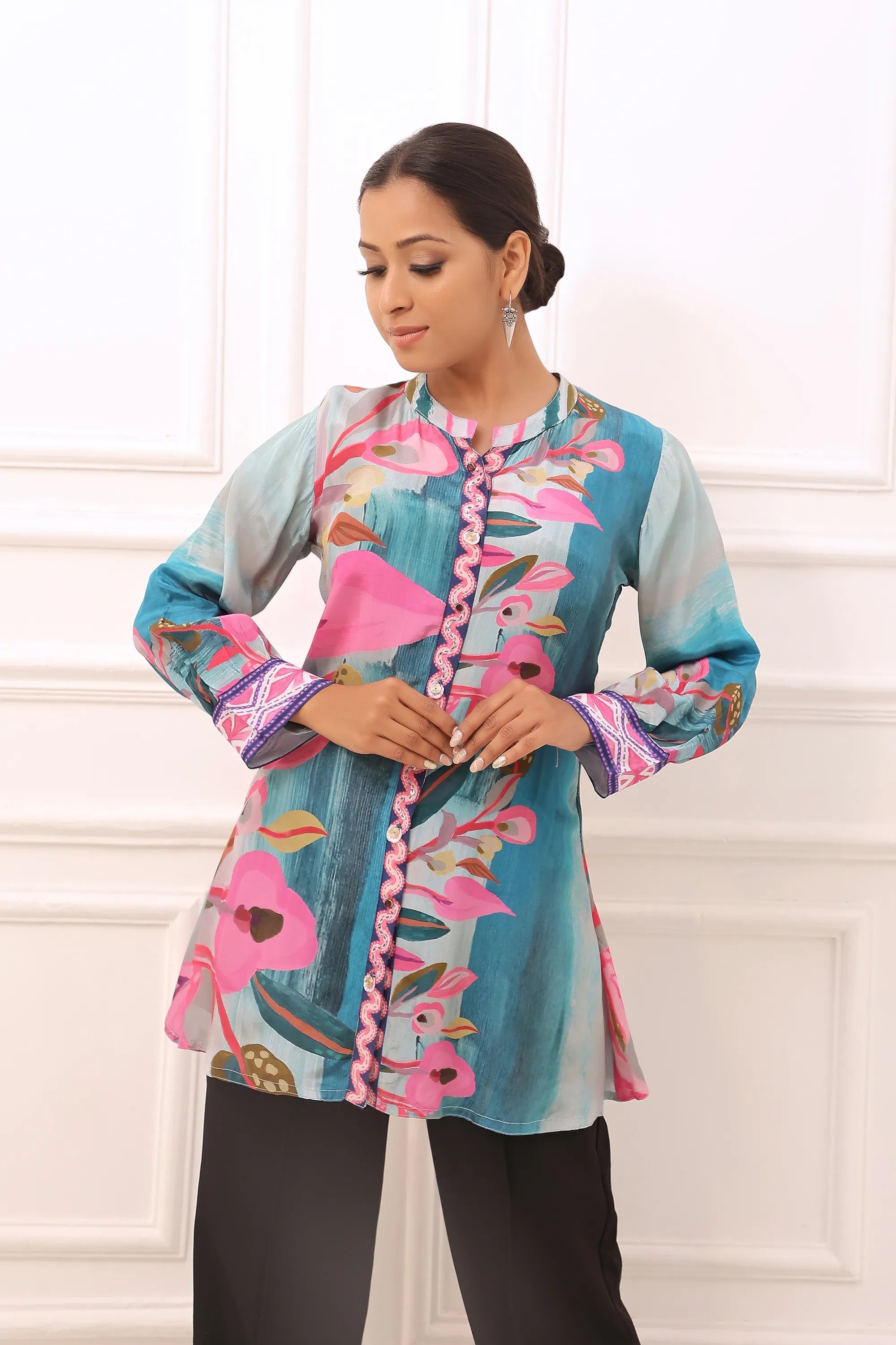 Fuchsia Pink Tunic With Geometric & Floral Print